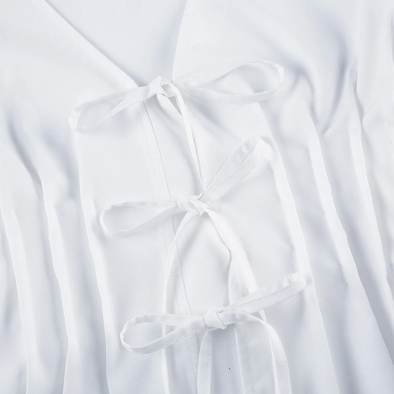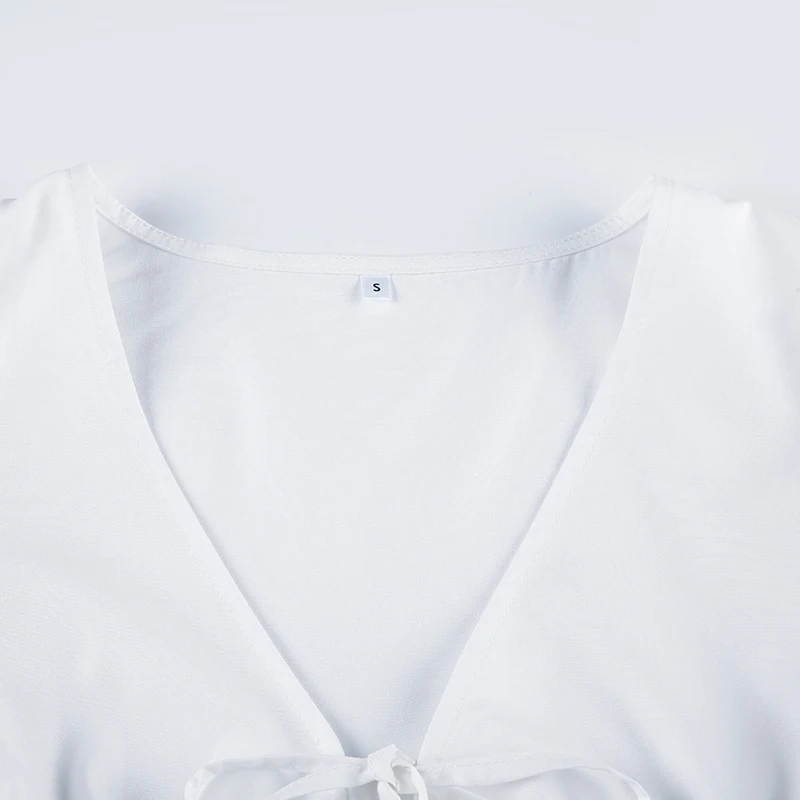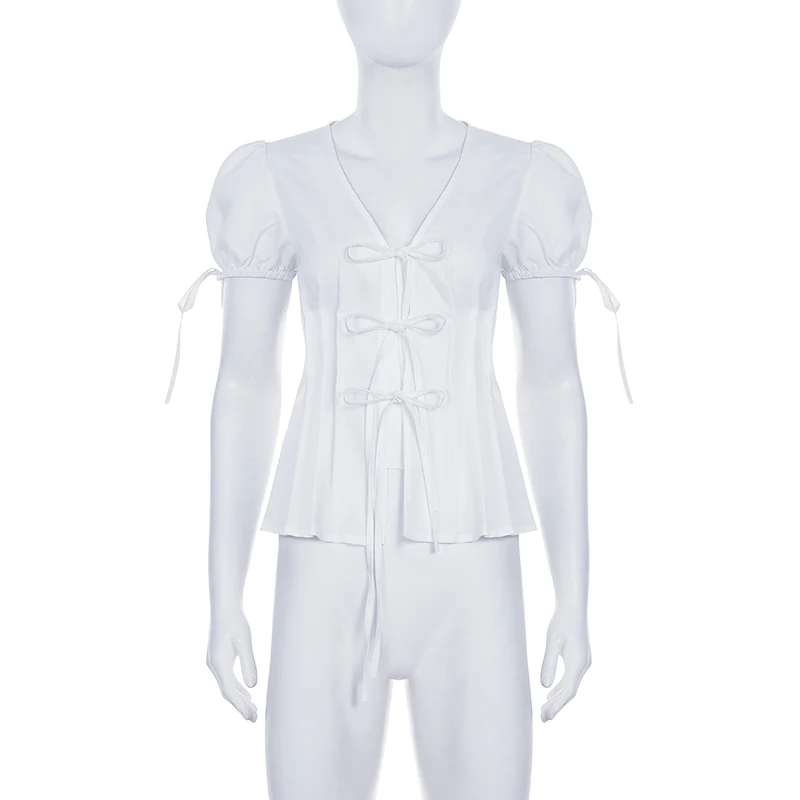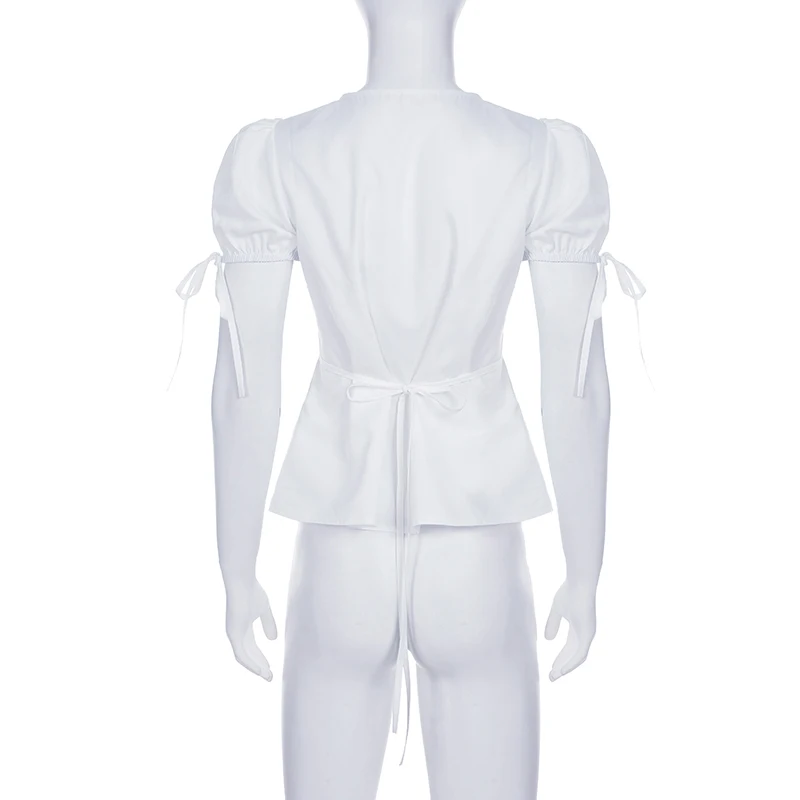 Cyflymder Elegant Fashion Solid Split Blouse Slim Bandage V-Neck Puff Sleeve Shirts Women 2025 Summer Fashion Streetwear Ladies