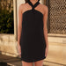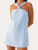 Cyflymder Elegant Floral Print Halter Neck Backless Dress Women s Summer Sleeveless Casual Mini Dress Solid Color Fashion