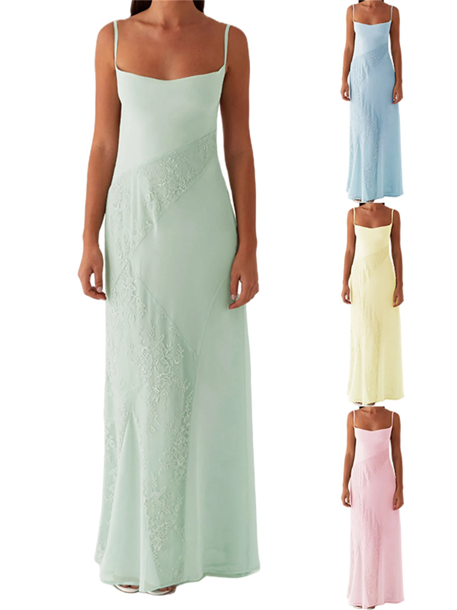 Cyflymder Elegant Floral Print Maxi Dress with V-Neckline and Adjustable Spaghetti Straps Boho Chic Summer Beach Dress for Women