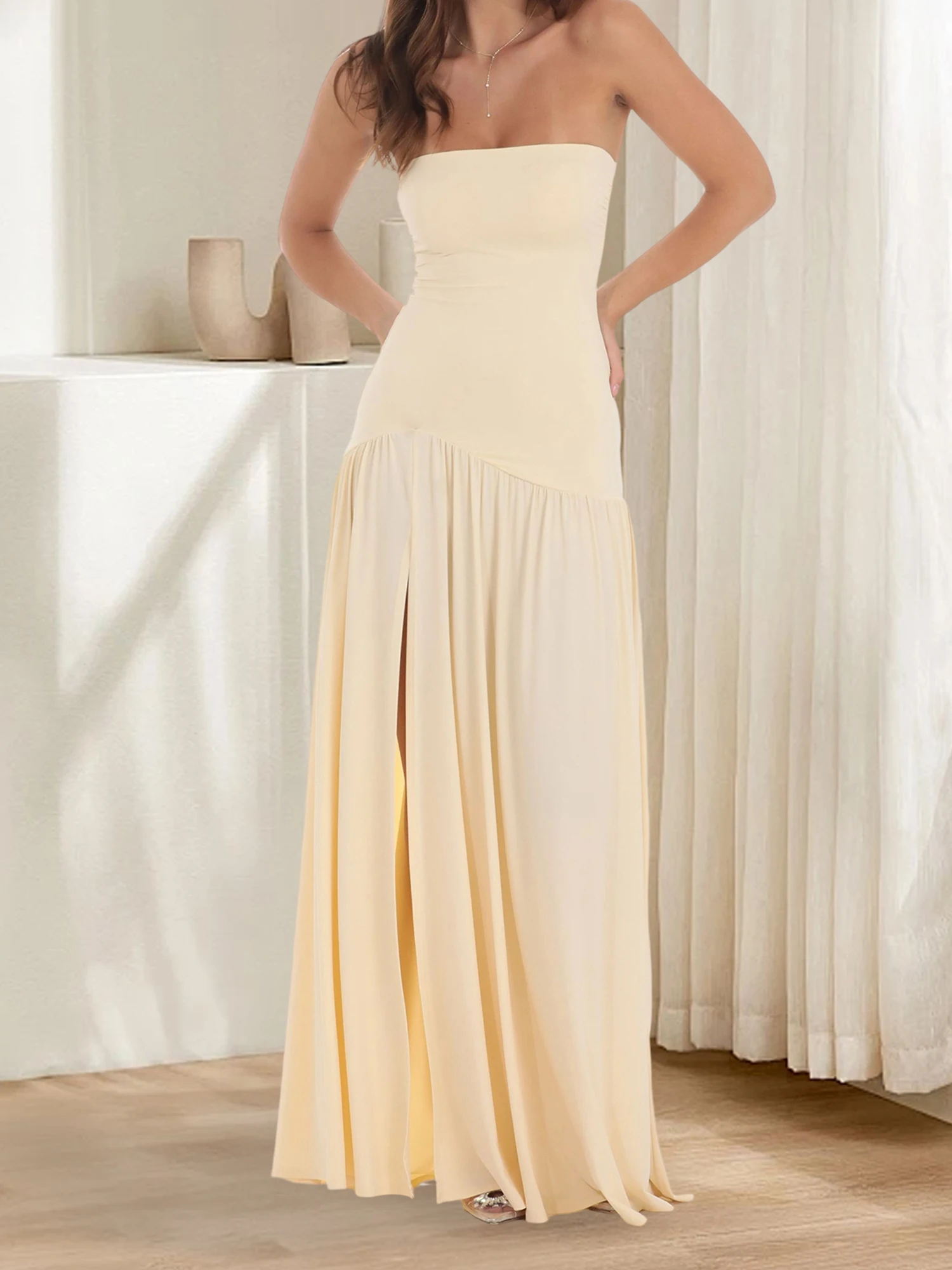 Cyflymder Elegant Floral Print Off Shoulder Maxi Dress with High Side Slit and Sleeveless Design for Evening Party or Clubwear
