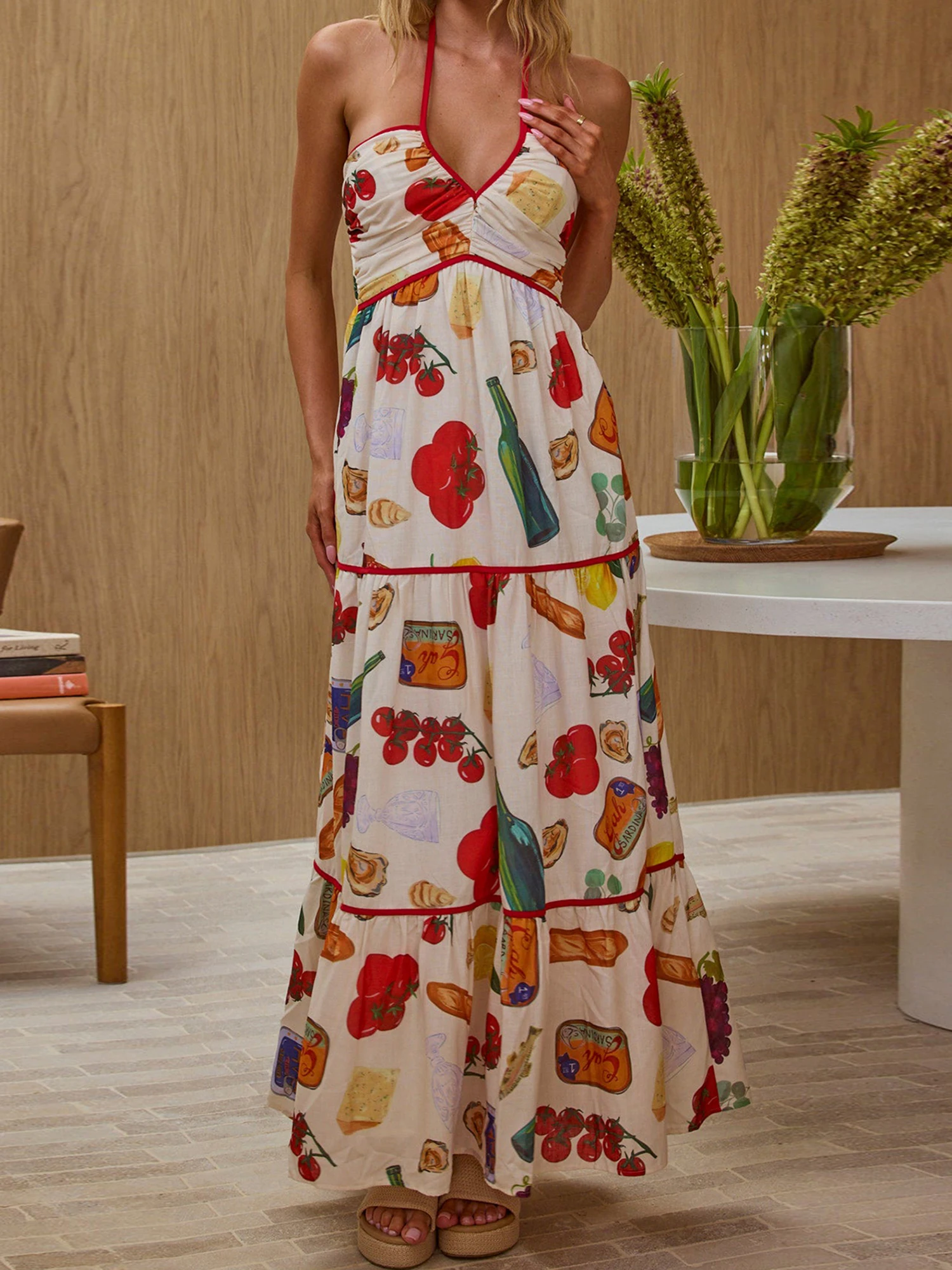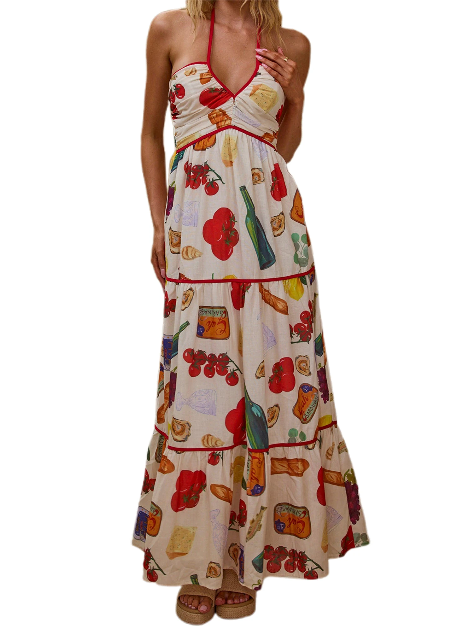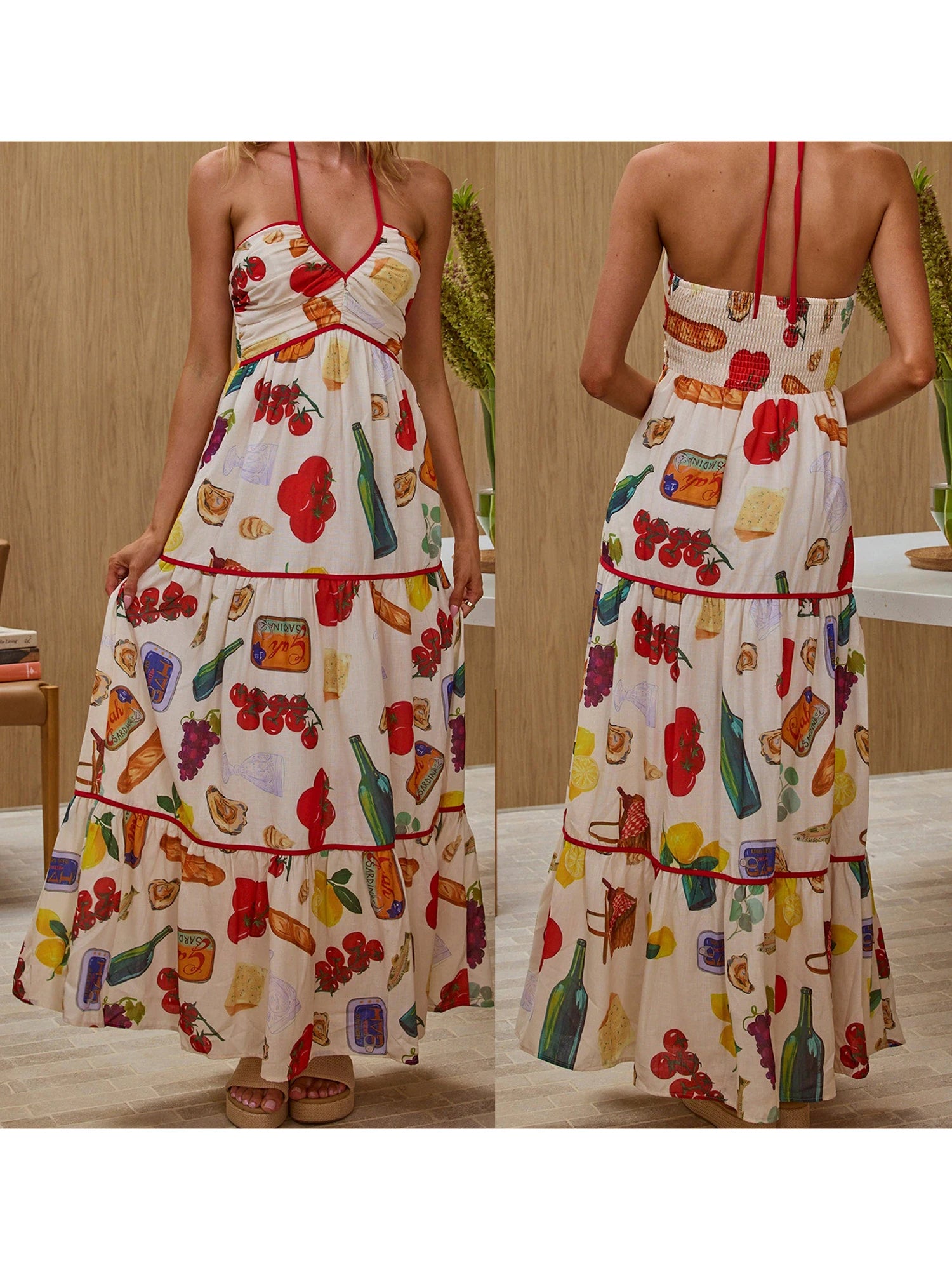 Cyflymder Elegant Floral Print Off Shoulder Maxi Dress with Ruffle Hem and Smocked Back for Women s Summer Fashion
