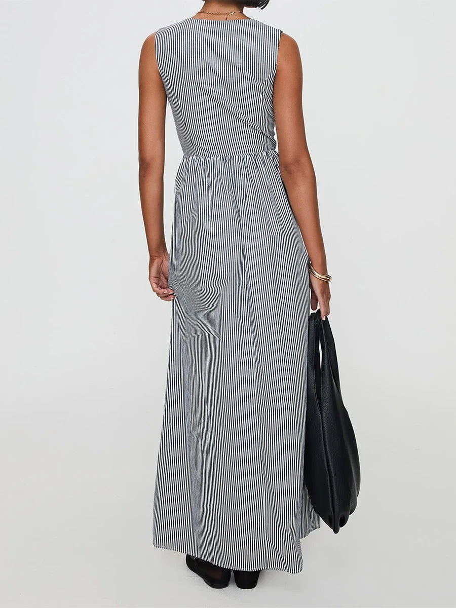 Cyflymder Elegant Floral Print Sleeveless Maxi Dress with V-Neckline and Tie Waist Detail for Summer Wedding Party or Vacation Beachwear