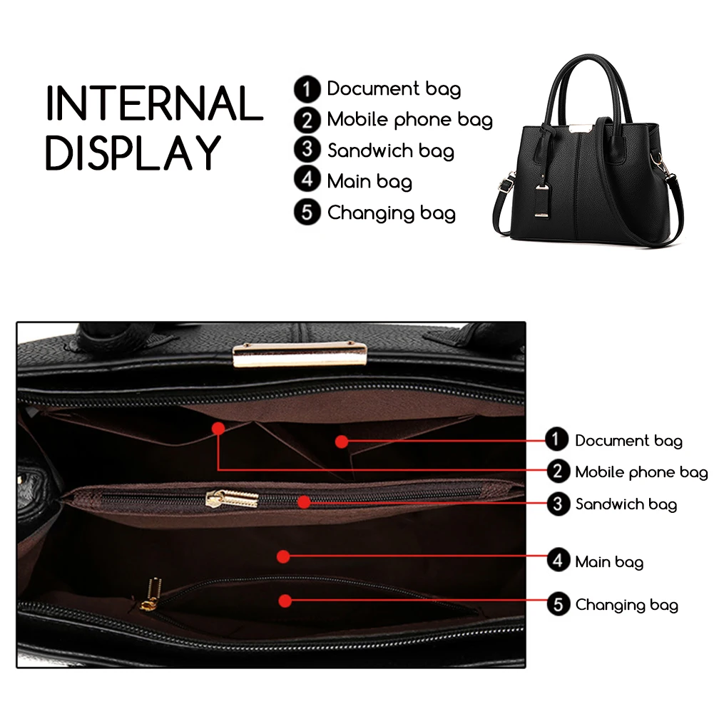 Cyflymder Elegant Handbags Women Bags Messenger Large Capacity PU Leather Crossbody Bags Fashion Girls Shoulder Bag Hand Tote Bag
