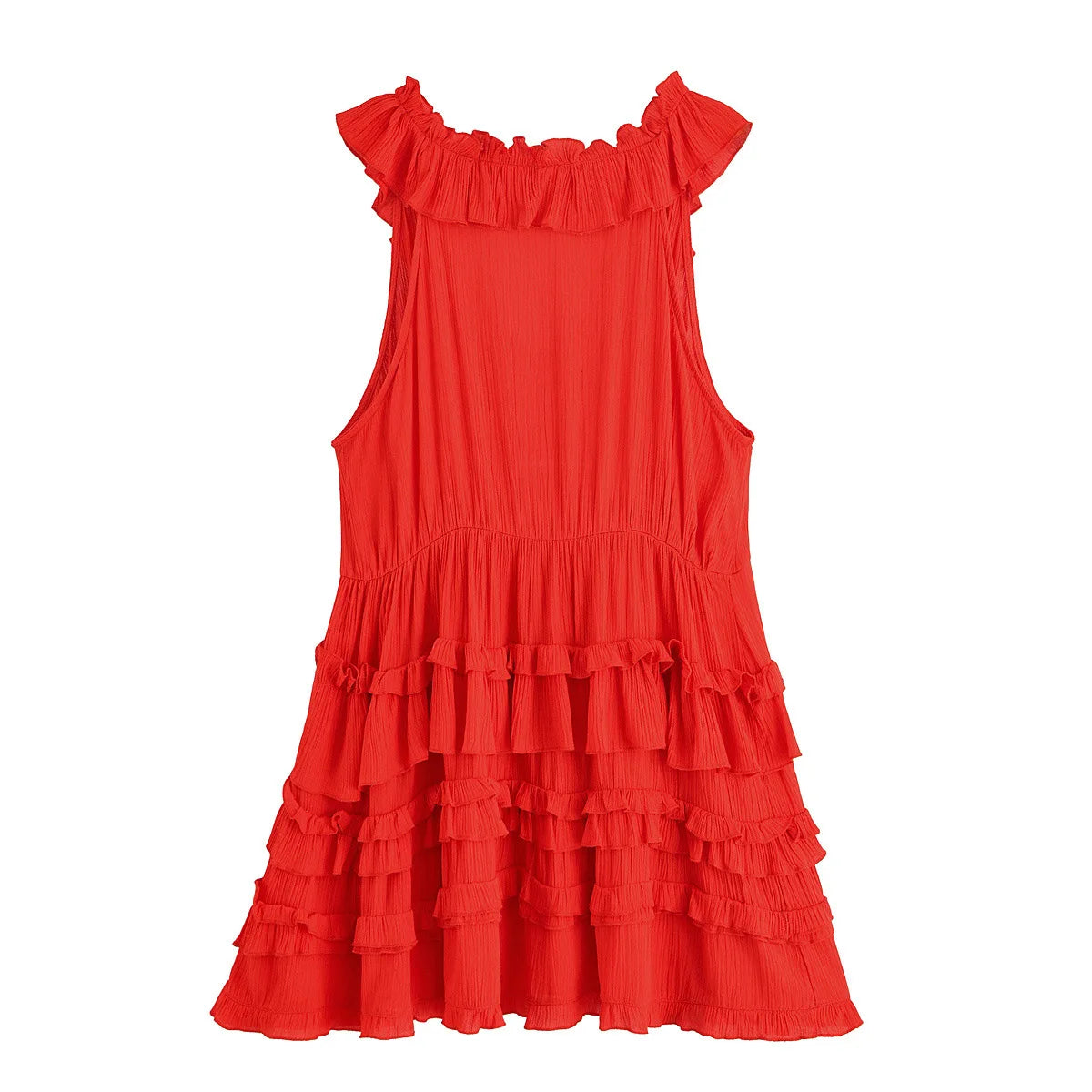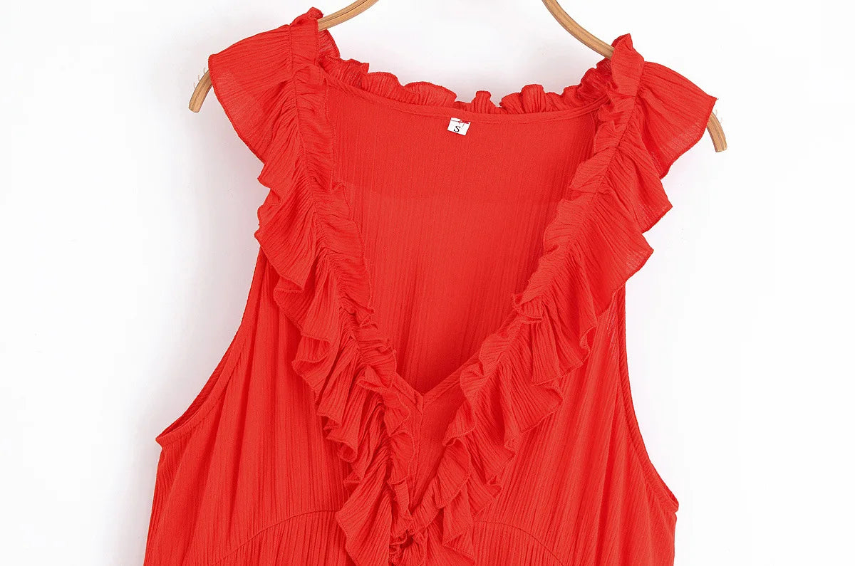 Cyflymder Elegant Layered Ruffle Dress Women 2025 New Summer Loose Sexy V-neck Sleeveless A-line Mini Dresses Vacation Party Evening Dress