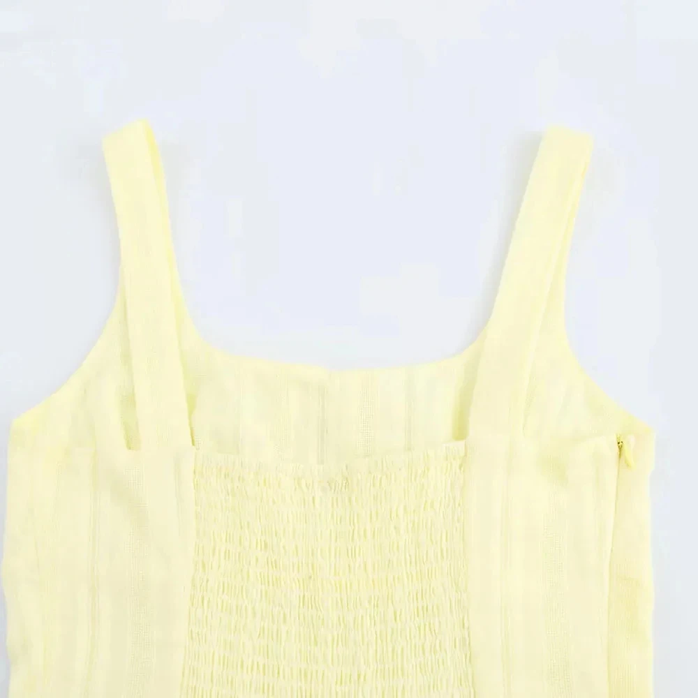 Cyflymder Elegant Long Dress For Women Lace Up Sleeveless Square Neck Dresses 2025 New Summer Chic Casual Simple Vacation Beach Midi Dress