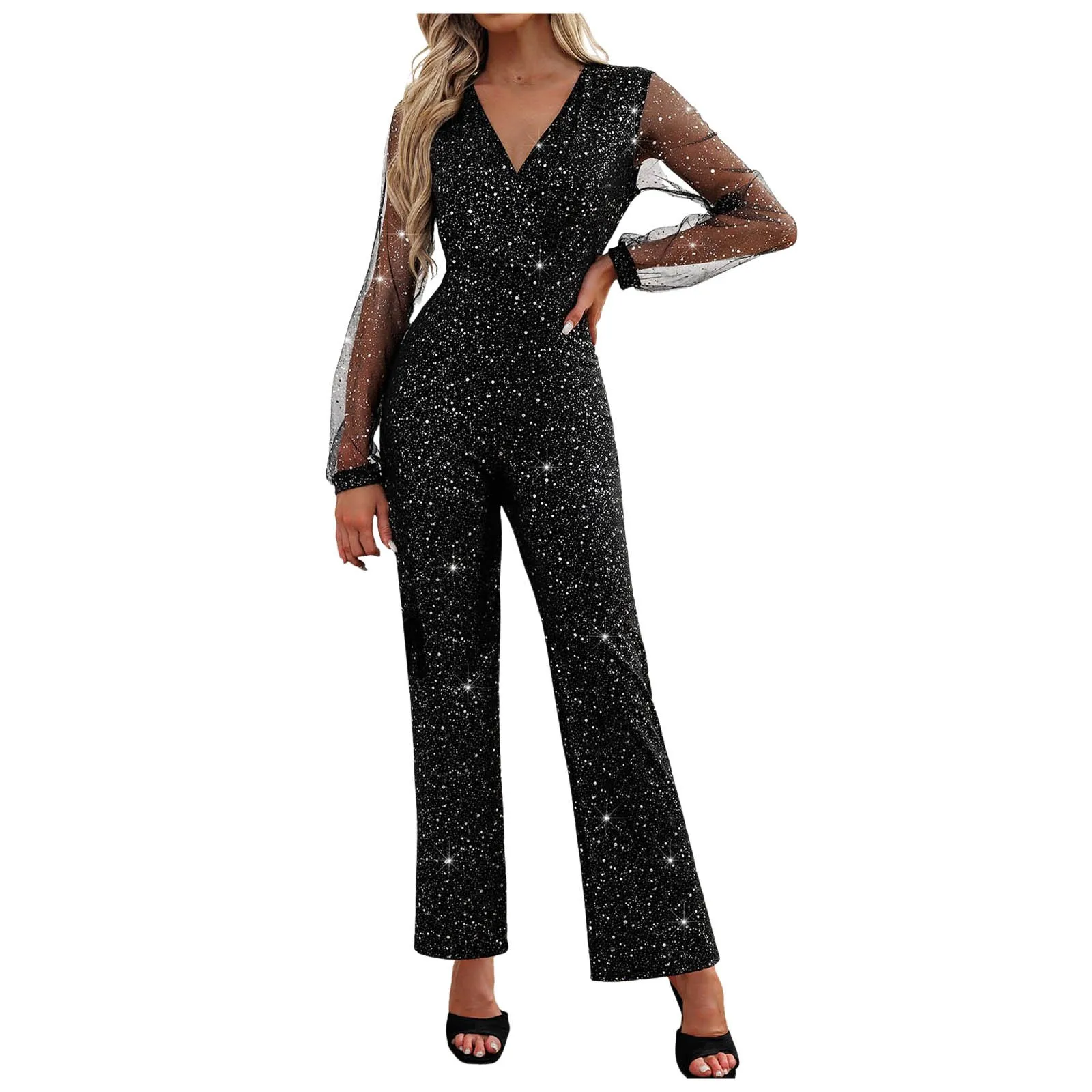 Cyflymder Elegant Romper For Women Fashion Slim Fit Silver Sequins Bodysuit Evening Party Long Jumpsuits Women's New Busniess Jumpsuit