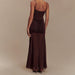 Cyflymder Elegant Sleeveless Maxi Dress with Ruched Detailing and Cutout Front Spaghetti Strap Backless Design for Women