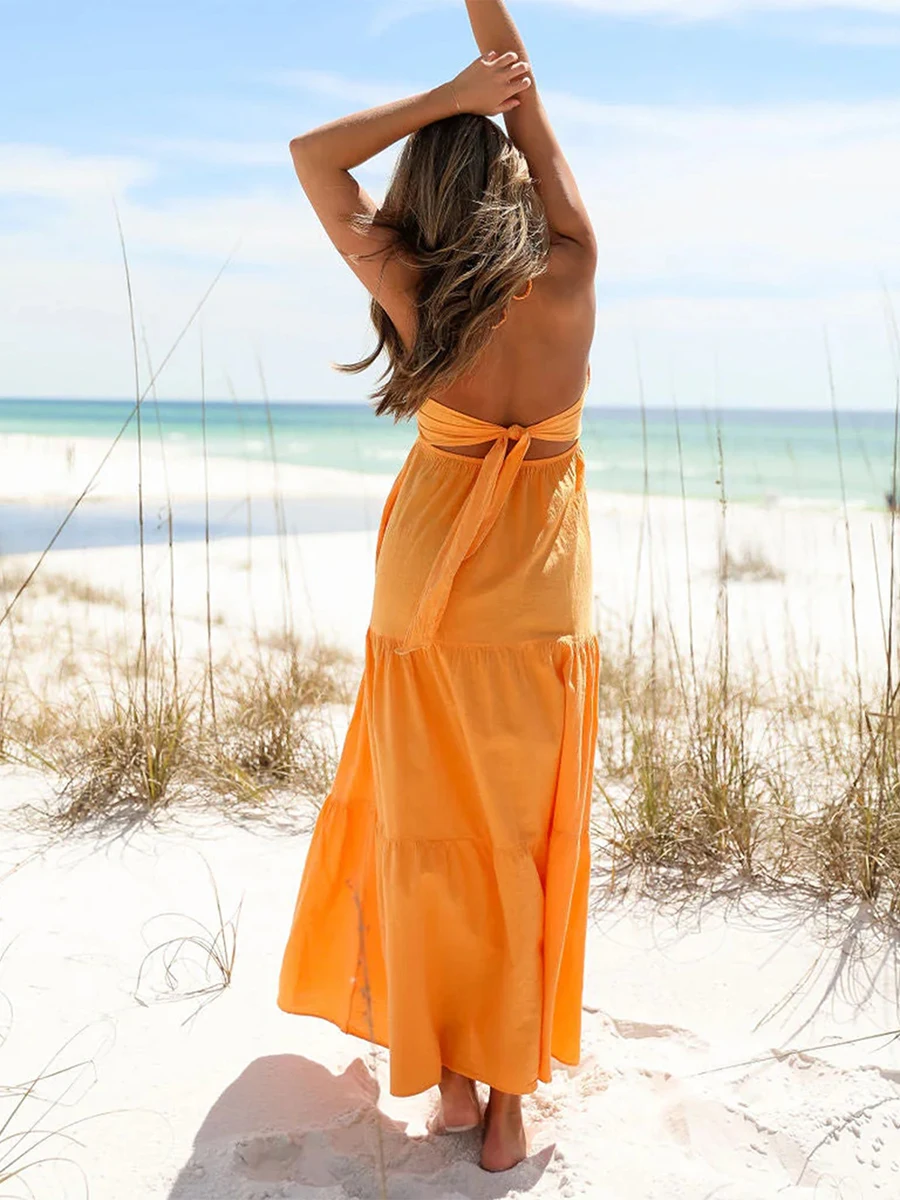 Cyflymder Elegant Sleeveless V-Neck Maxi Dress with Floral Print and Ruffle Hem for Summer Beach Wedding Party Vacation Wear