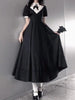 Cyflymder Elegant Spliced O Neck Short Sleeve A-line Long Dress Y2k Euramerican High Street Gothic Women Dress Vintage Lolita Punk Clothes