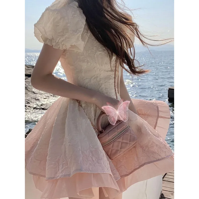 Cyflymder Elegant Sweet Gradient Princess Puffy Dress Summer New French Style Petite Waist Slimming Fit Pure And Sexy Look