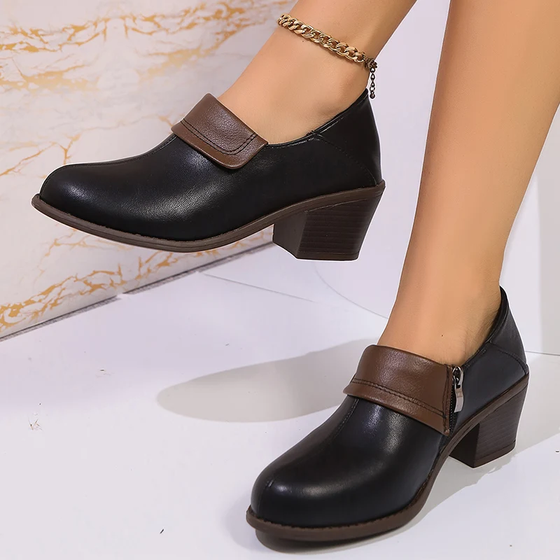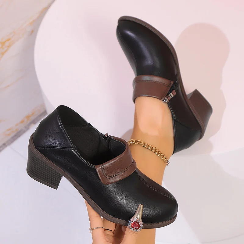 Cyflymder Elegant Women Thick High Heels 2025 Spring Pu Leather Plus Size Pumps New Waterproof Woman Non Slip Office Single Shoes