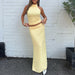 Cyflymder Elegant Women's 2 Piece Outfits Casual Sleeveless Halter Crop Top High Waist Long Skirt Solid Set for Cocktail Party