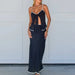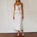 Cyflymder Elegant Women's 2 Piece Summer Set Contrast Trim V Neck Open Front Knotted Crop Cami Tops Midi Dress for Party Club