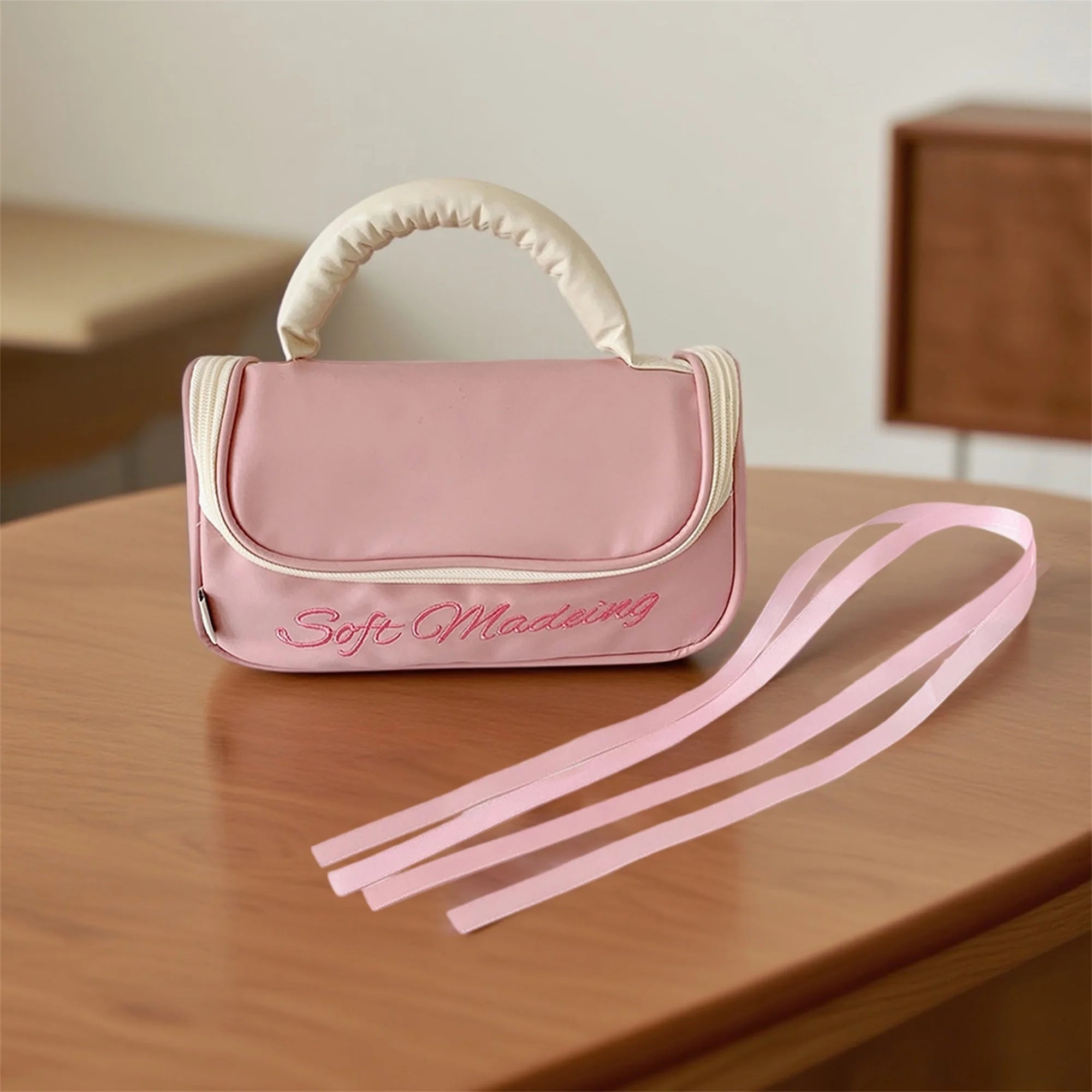 Cyflymder Embroidered Large Capacity Zipper Pencil Case with Handle for School Supplies Organization and Stationery Storage for Students