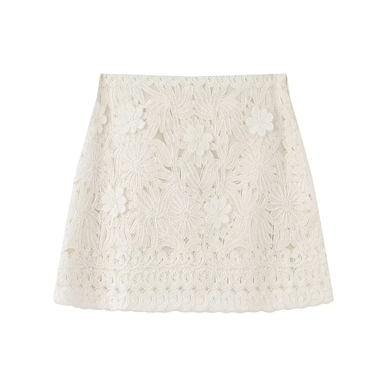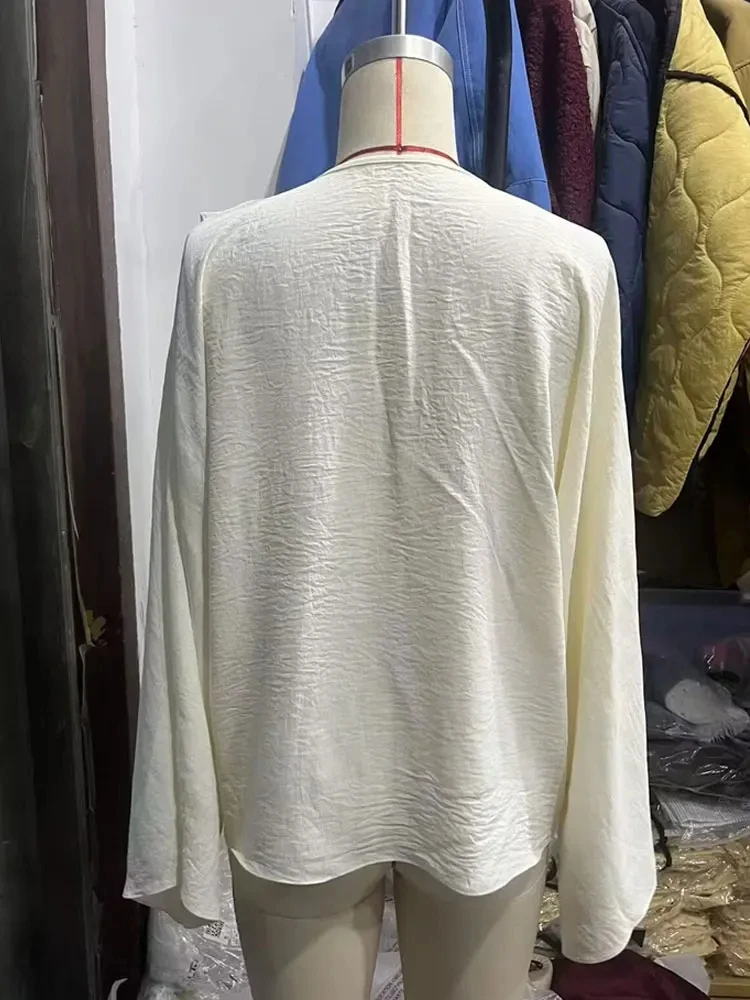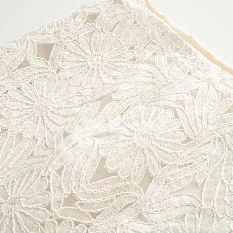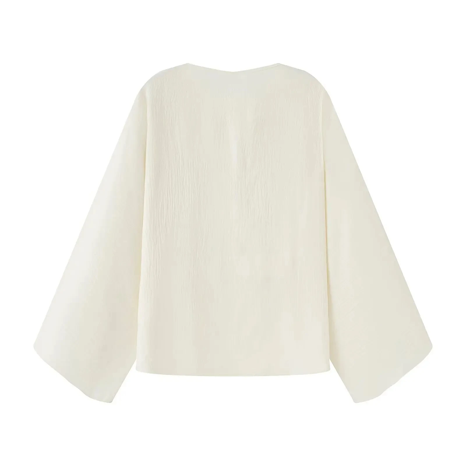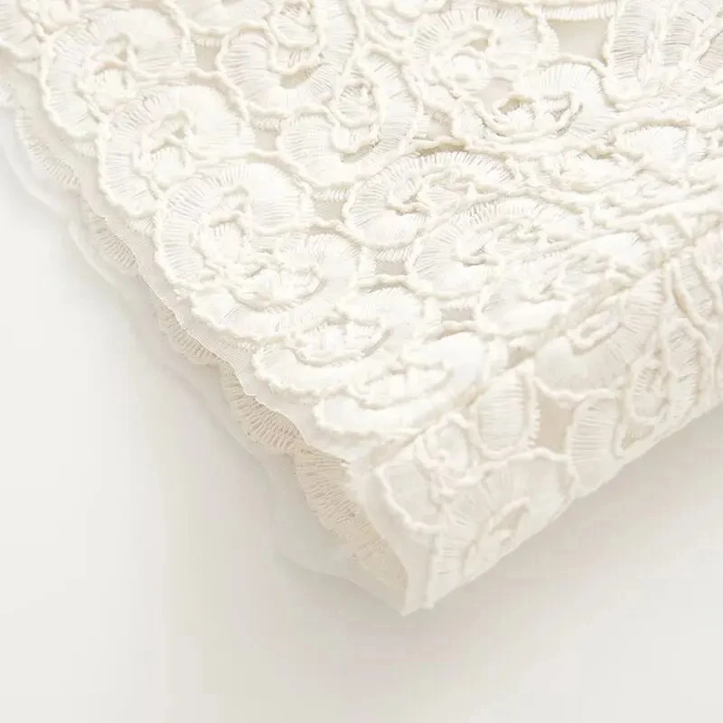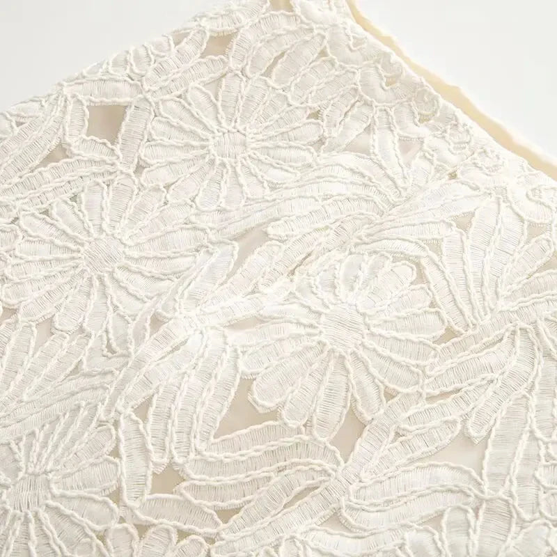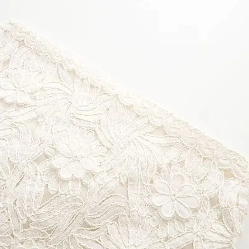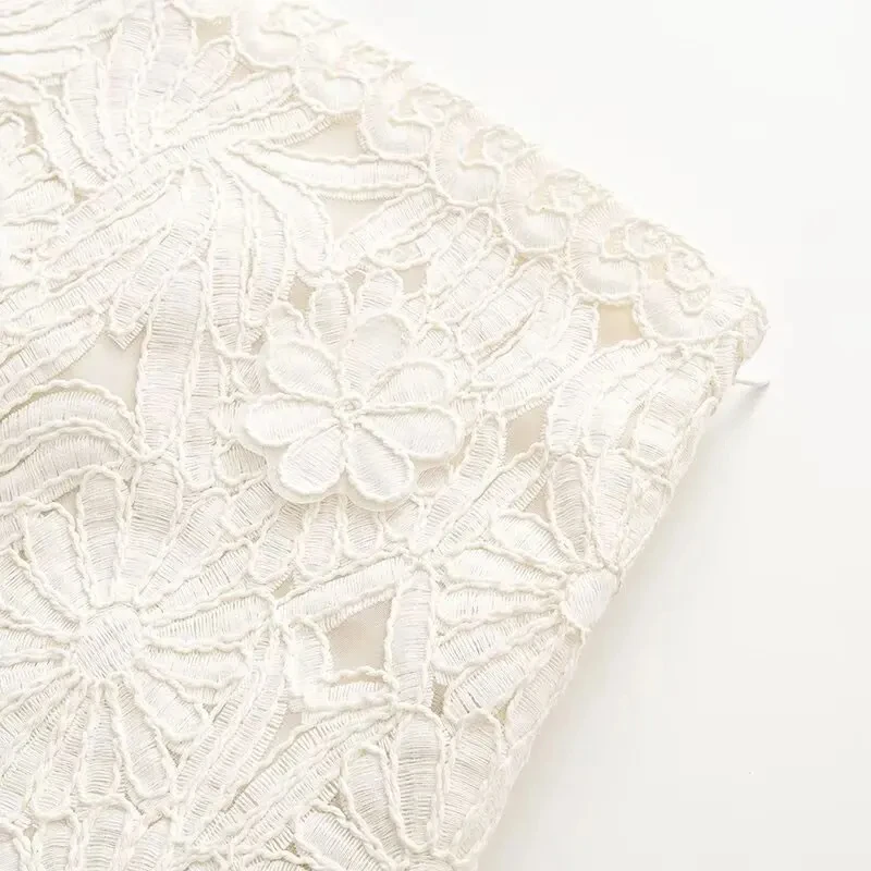 Cyflymder Embroidery Crochet Hollow Shirts For Women Elegant Long Sleeve O Neck Lace Up Blouse Female 2025 New Summer Casual Loose Shirt