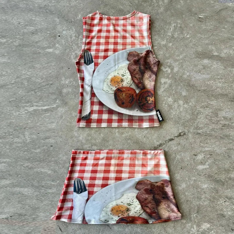 Cyflymder Euramerican Fashion O Neck Sleeveless Harajuku Camisole Cute Plaid Punk Print Short Skirts Y2k Aesthetic Girl Two Piece Sets