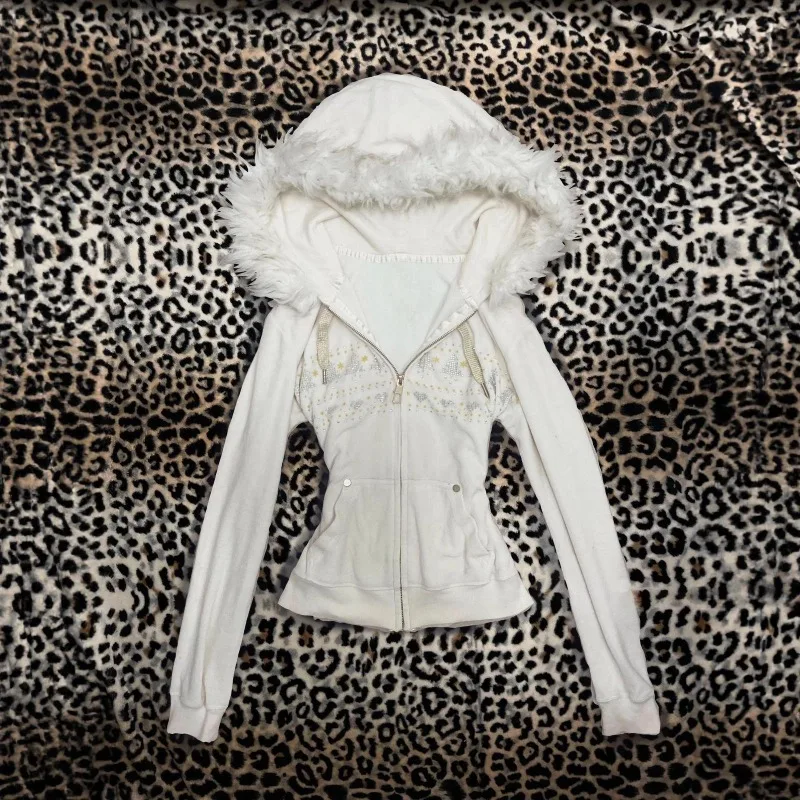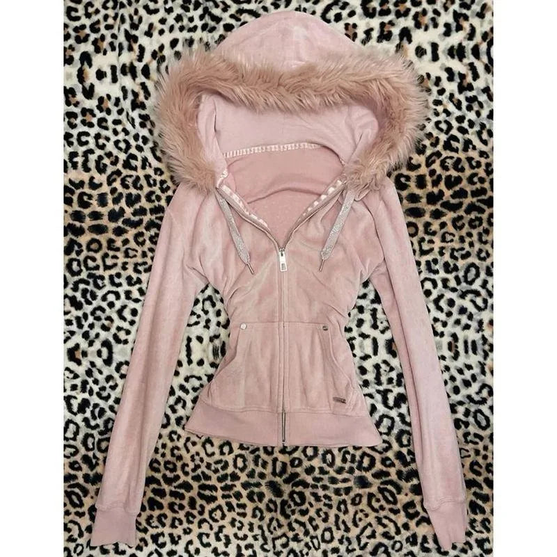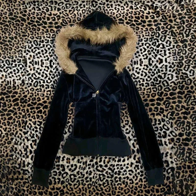 Cyflymder Euramerican Fashion Vintage Autumn Winter Velvet Hooded Jacket Y2k Harajuku Classic All Match Women Clothes Street Punk Coats