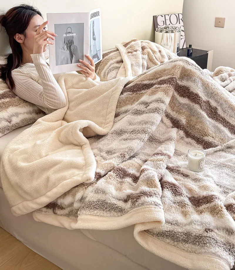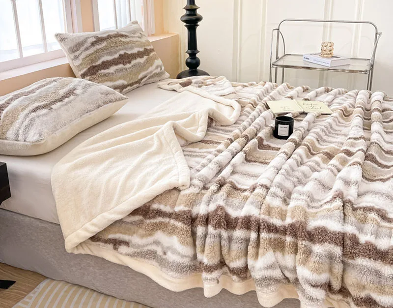 Cyflymder European Luxury Rabbit Plush Thick Blanket Multifunctional Nap Lamb Wool Blanket for Office Skin-Friendly Bedspreads for Home