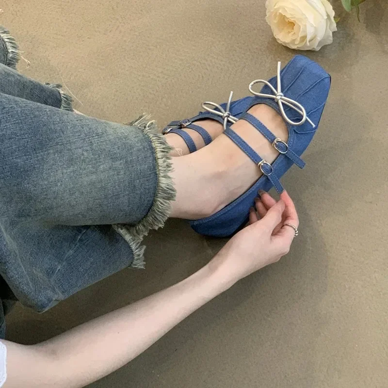 Cyflymder Exquisite Bowtie Women Sandals Fashion One Strap Summer Shoes Luxury Designer Flats 2024 New Chaussures Simple Round Toe Sapato