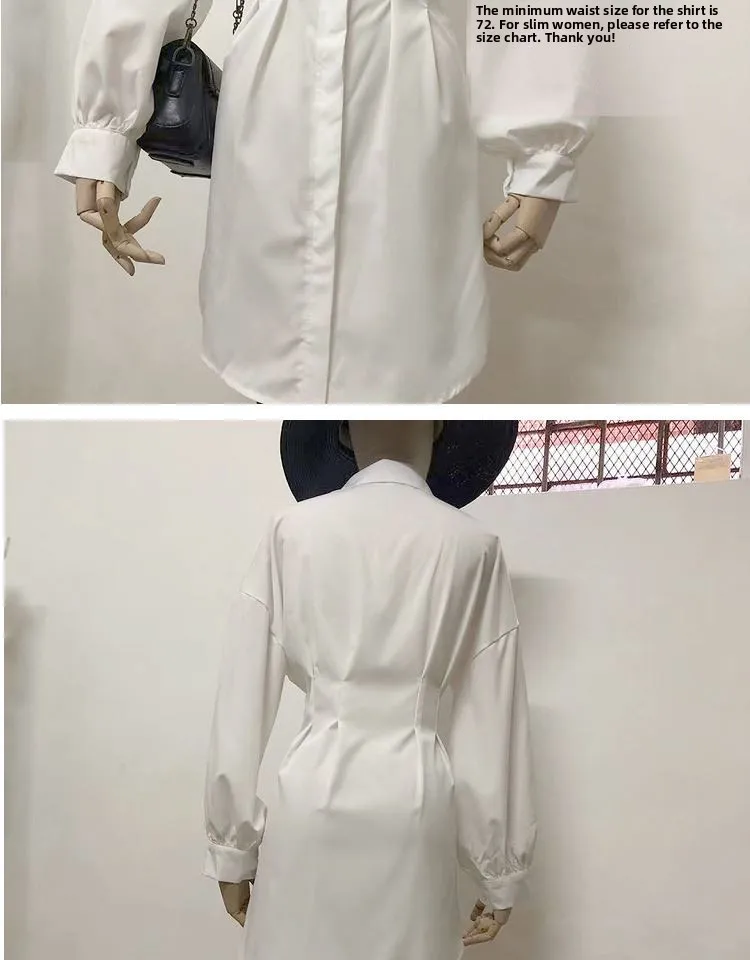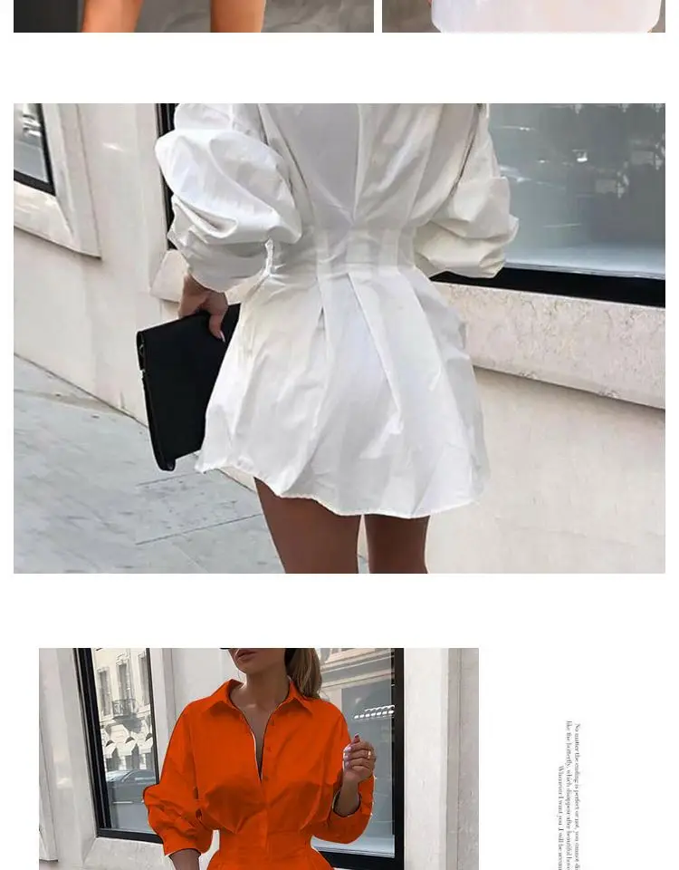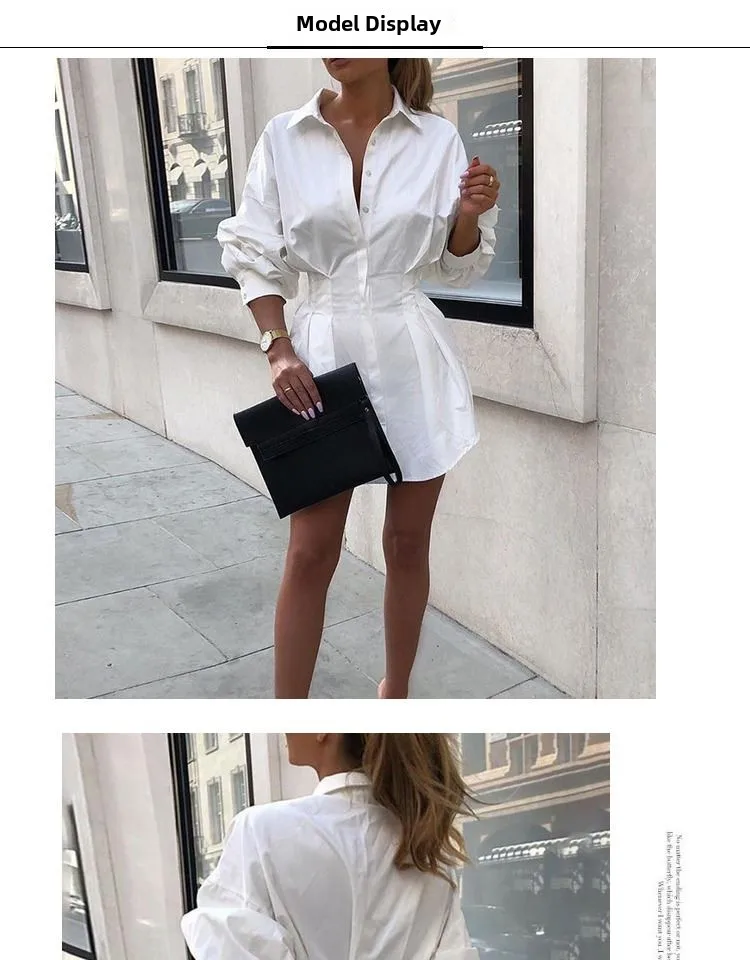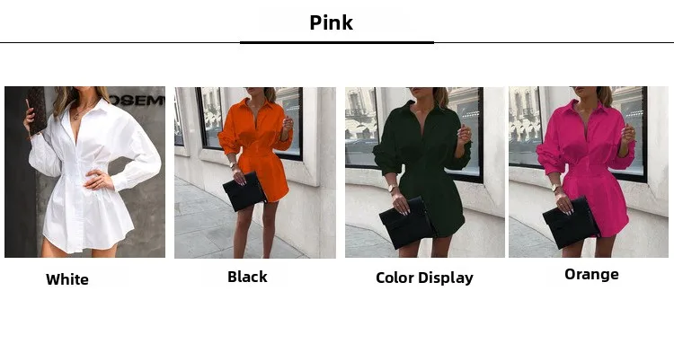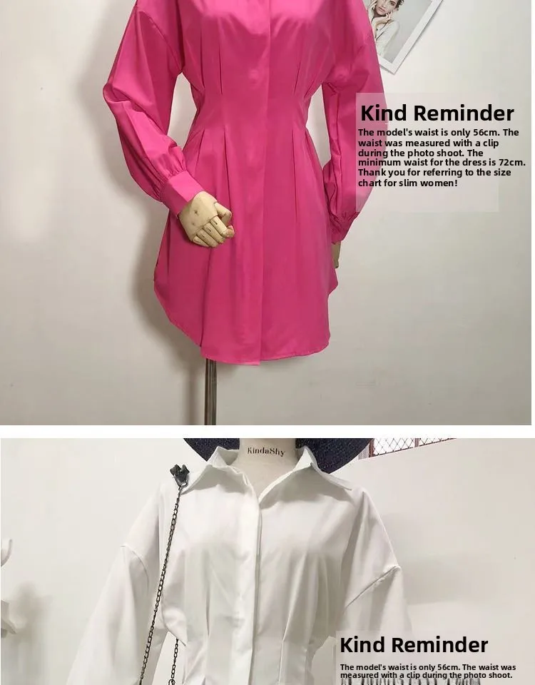 Cyflymder Faionable Loose Long Sve Women's irt Waist-Cinching Midi Dr Trendy Street Sle Pure Color Collar Button Detail