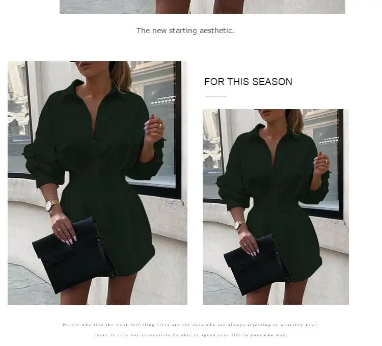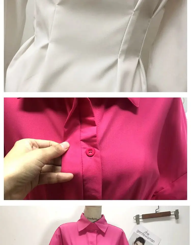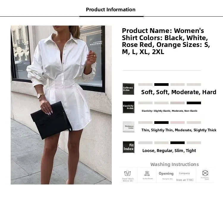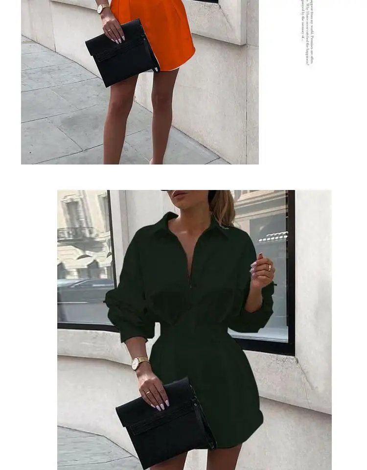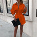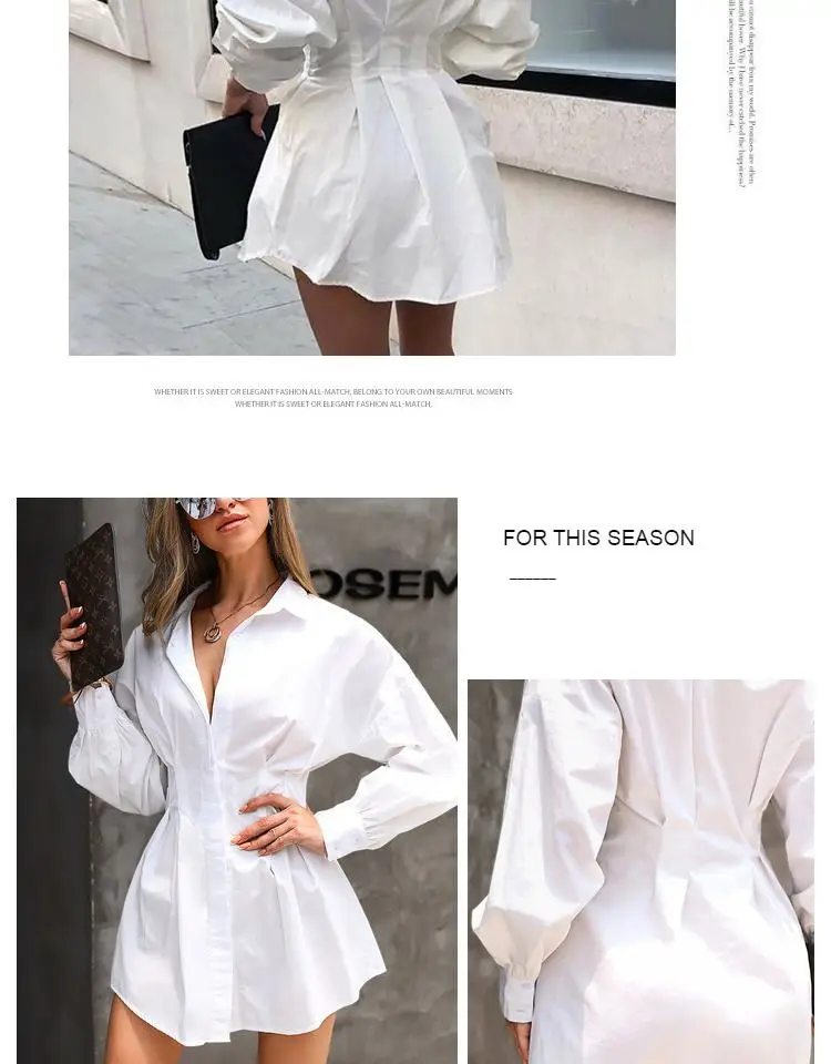 Cyflymder Faionable Loose Long Sve Women's irt Waist-Cinching Midi Dr Trendy Street Sle Pure Color Collar Button Detail