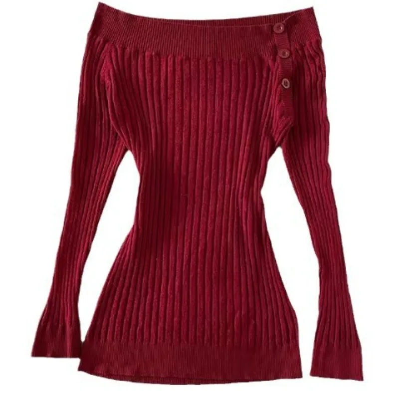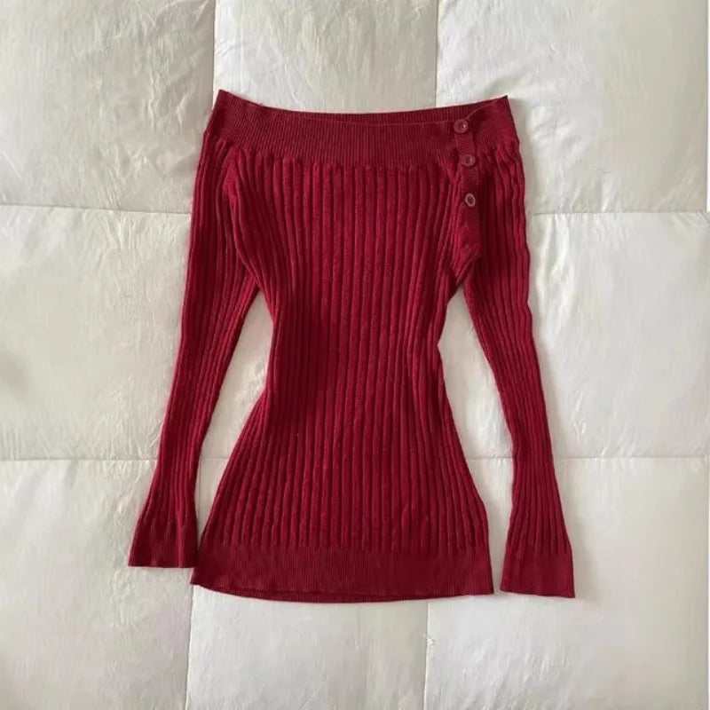 Cyflymder Fashion American Vintage Slash Neck Knitted Sweaters Y2k Solid Simple French Streetwear Pullover Casual Autumn Women Clothes