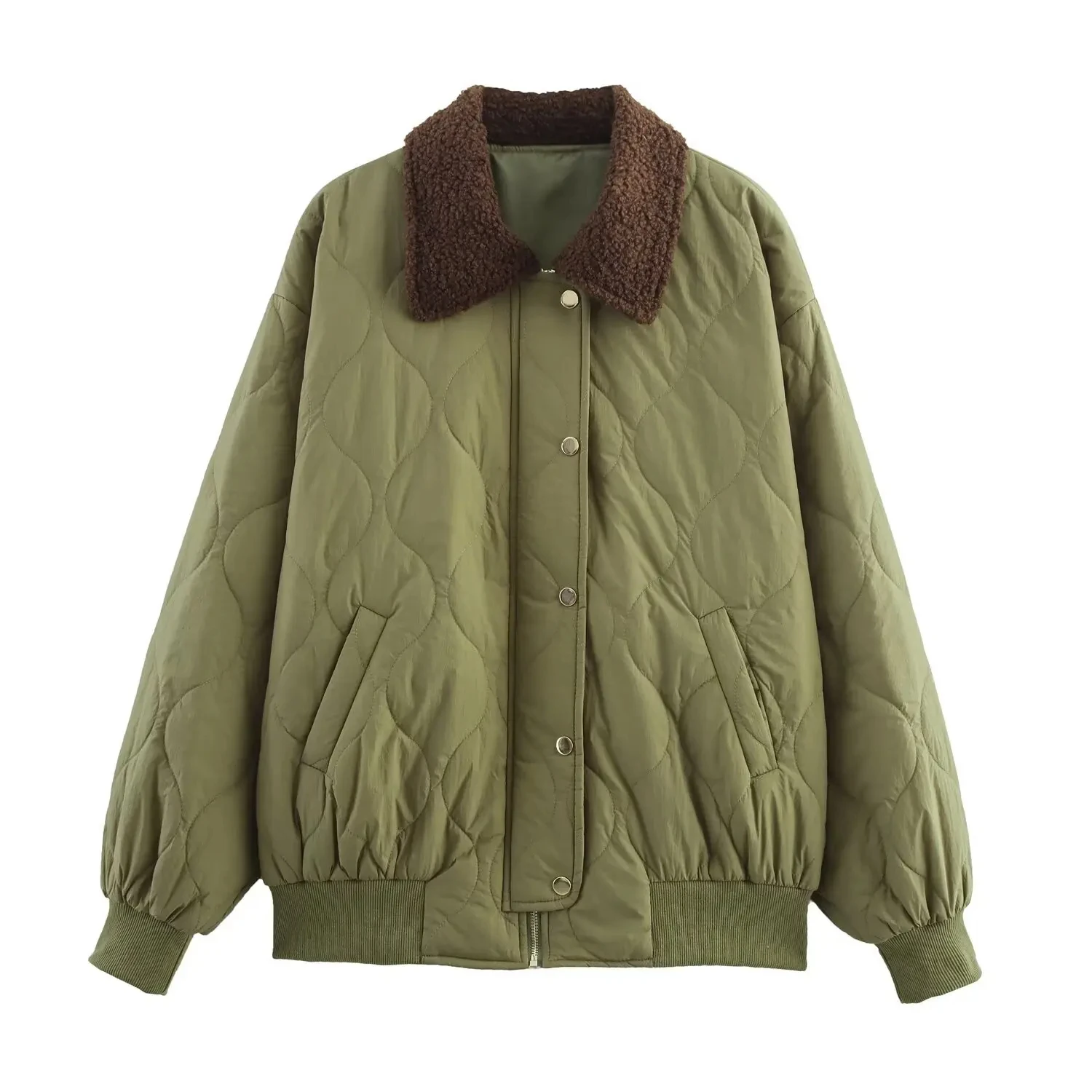 Cyflymder Fashion Cotton-Padded Bomber Jacket Women Harajuku Casual Loose Single Breasted Pocket Zipper Jacket Coat 2025 New Autumn Winter