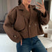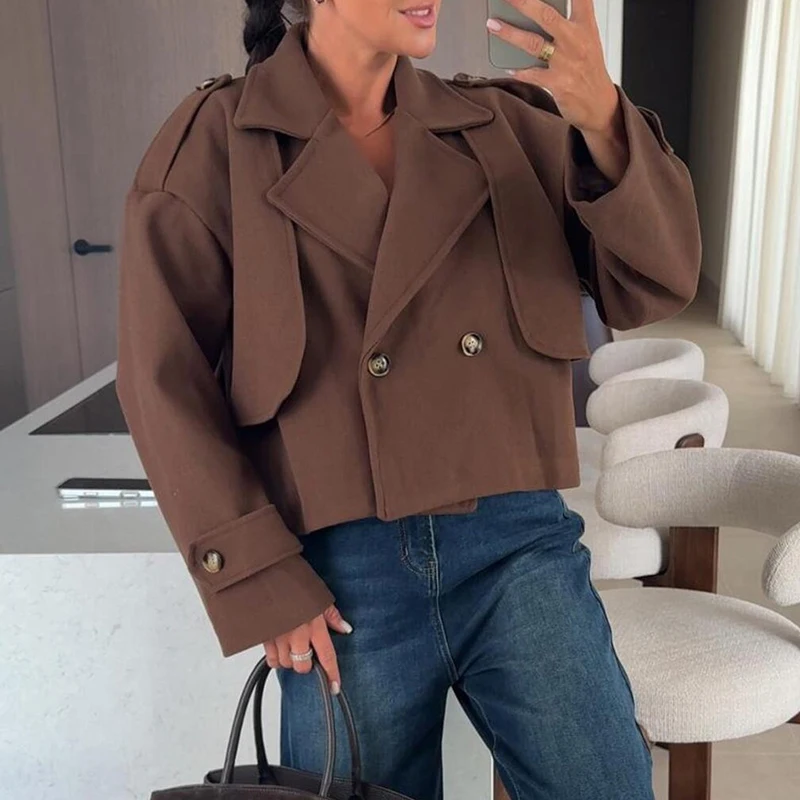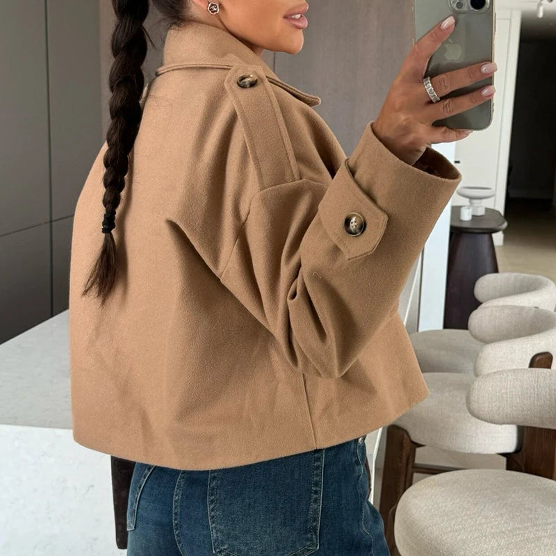 Cyflymder Fashion Double Breasted Warm Outwear Ladies Casual Streetwear Solid Color Coat Elegant Office Lapel Long Sleeved Autumn Jacket