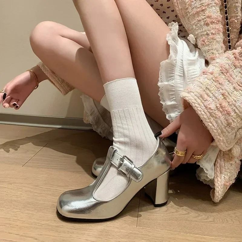 Cyflymder Fashion Janes Women's High Heels Concise Dress Pumps High Chunky Heels Buckle Strap