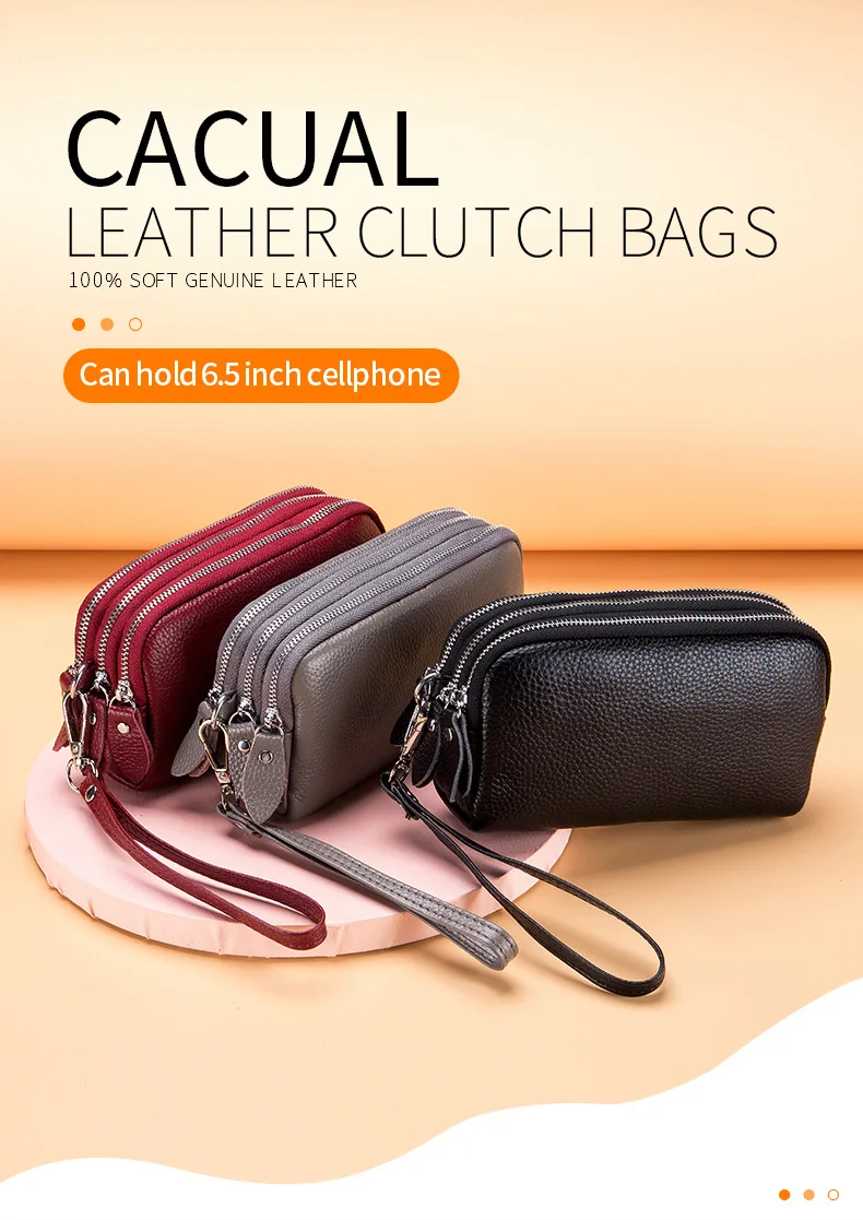 Cyflymder Fashion Long Wallet High Quality genuine leather Clutch Walllet Phone Pocket Casual Organizer Clutches Rfid Purse phone bag red