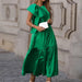 Cyflymder Fashion O Neck High Waist Commuting Long Dress Casual Street Wear Loose Green Dress Bow Decoration Women's Evening Dress Vestido