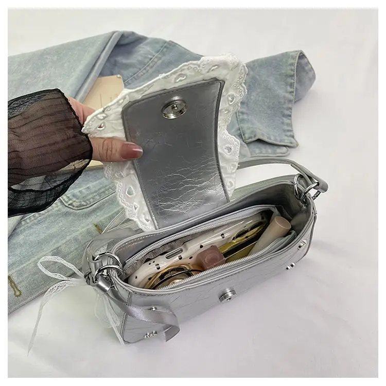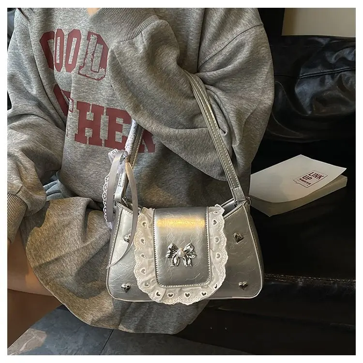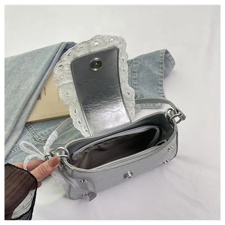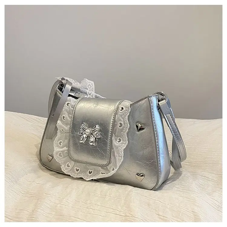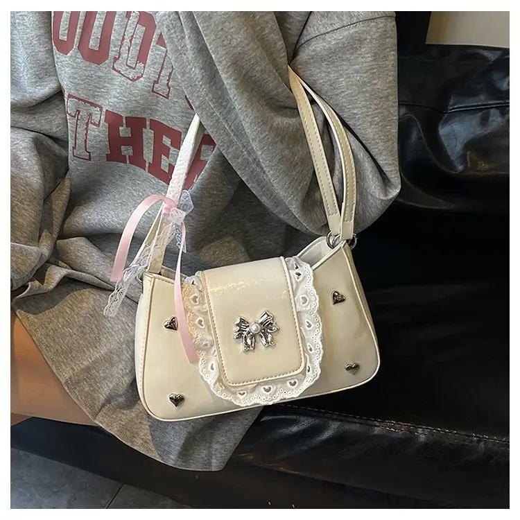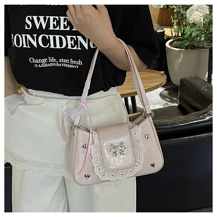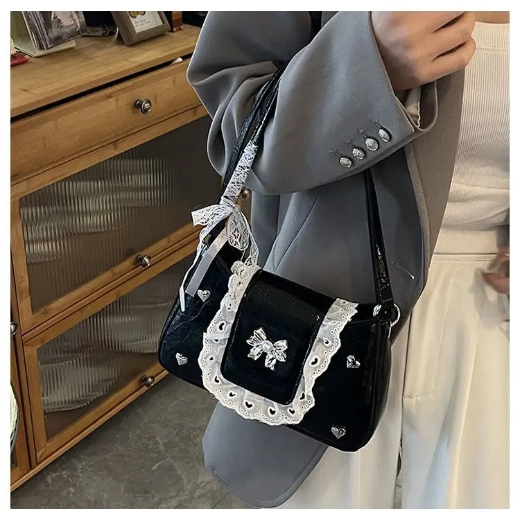 Cyflymder Fashion Patchwork Lace Office Lady Shoulder Bags Sweet Heart Elegant Women Underarm Bag Luxury Design Y2k Aesthetic Ins Handbags