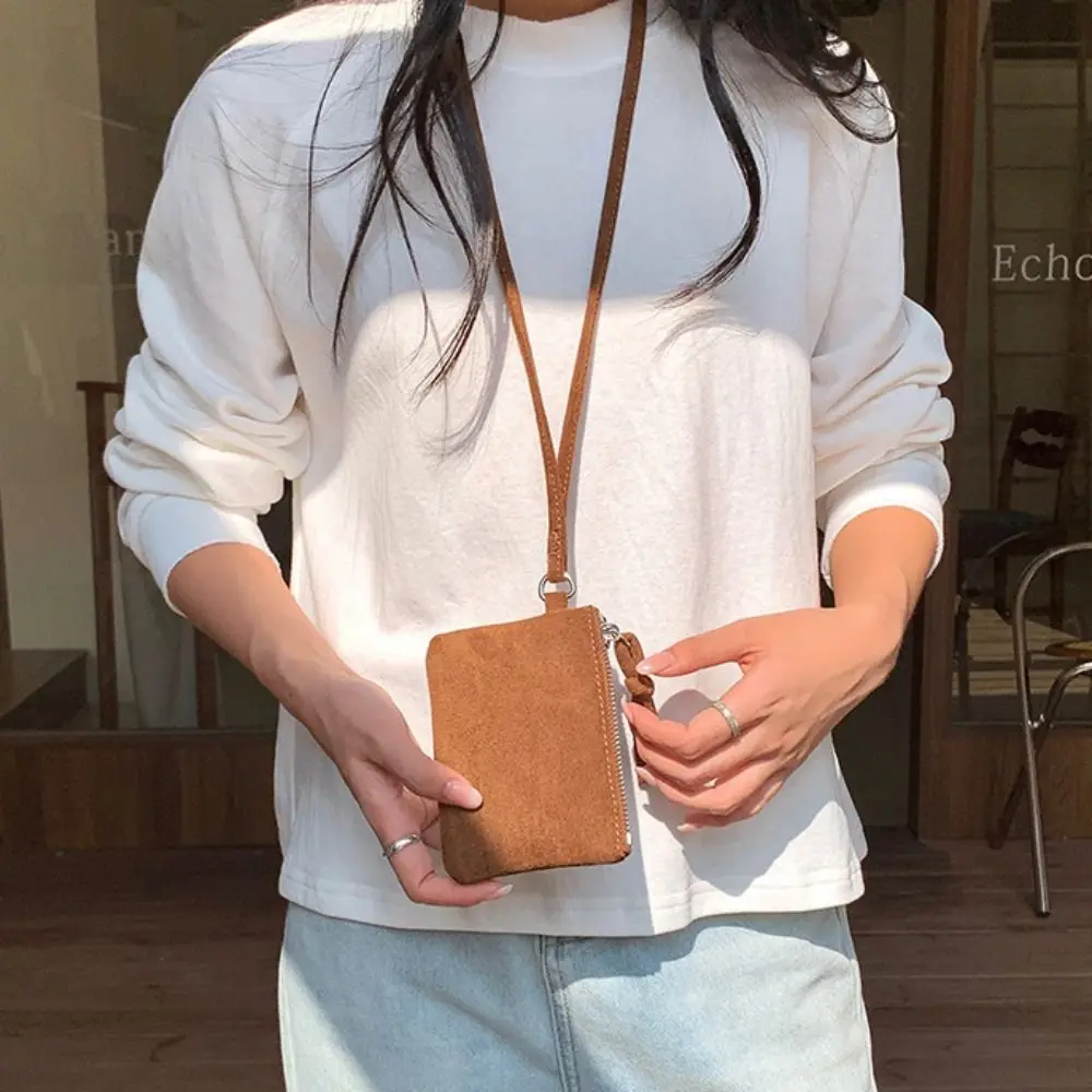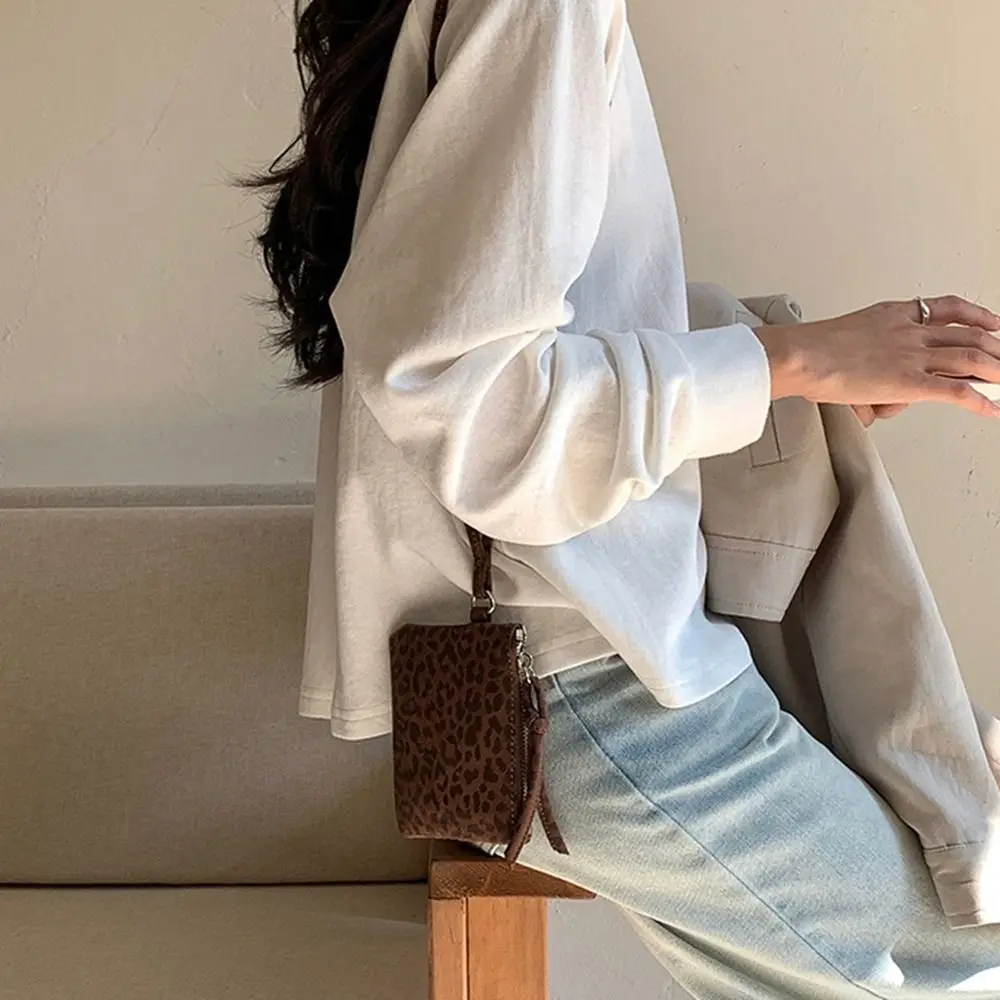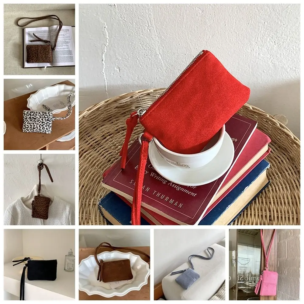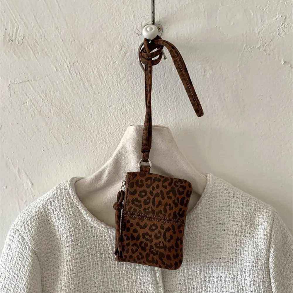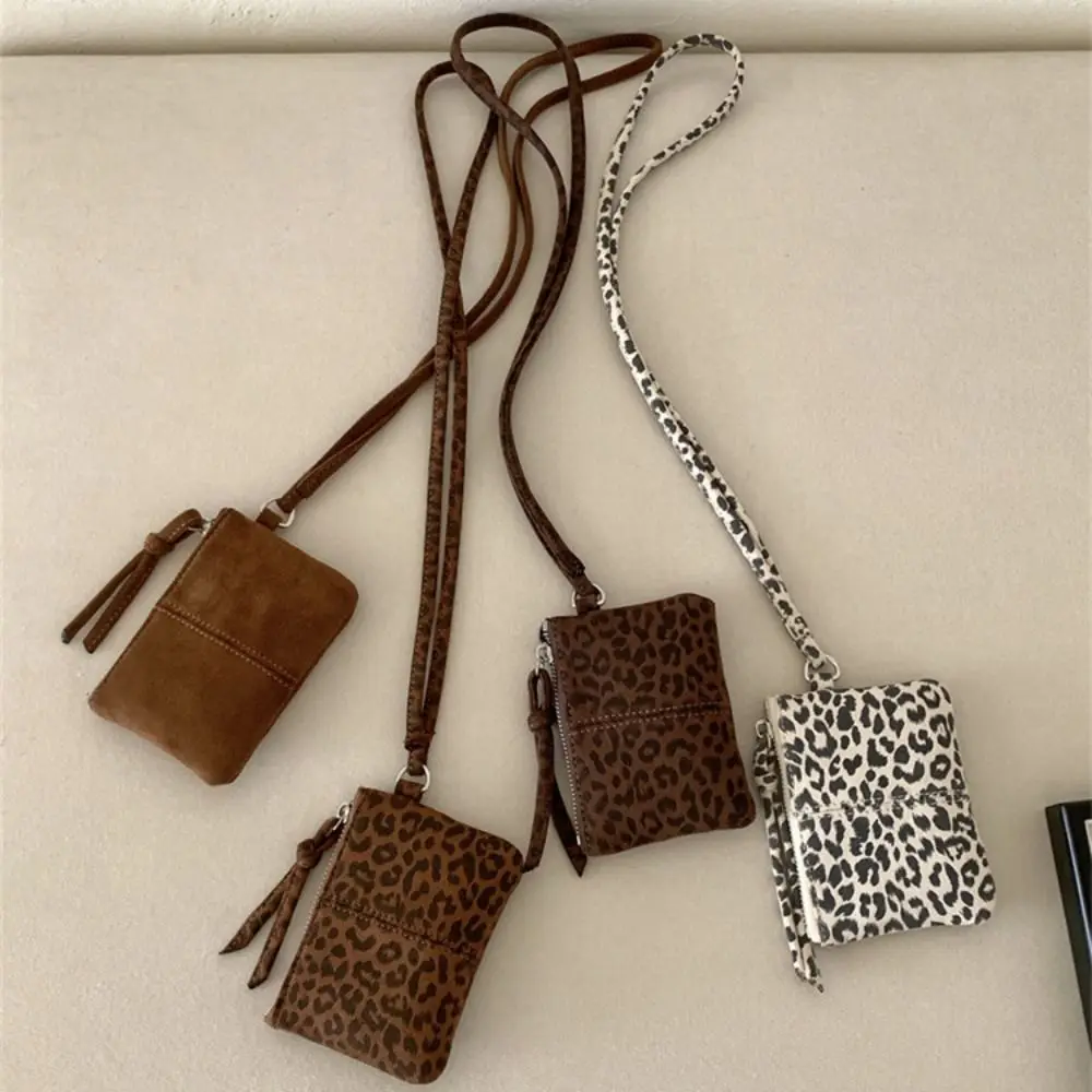 Cyflymder Fashion PU Leather Suede Coin Purse Leopard Print Hanging Neck Mini Storage Bag Shoulder Bag Purse Pendant Accessories Outdoor