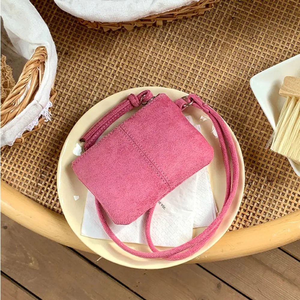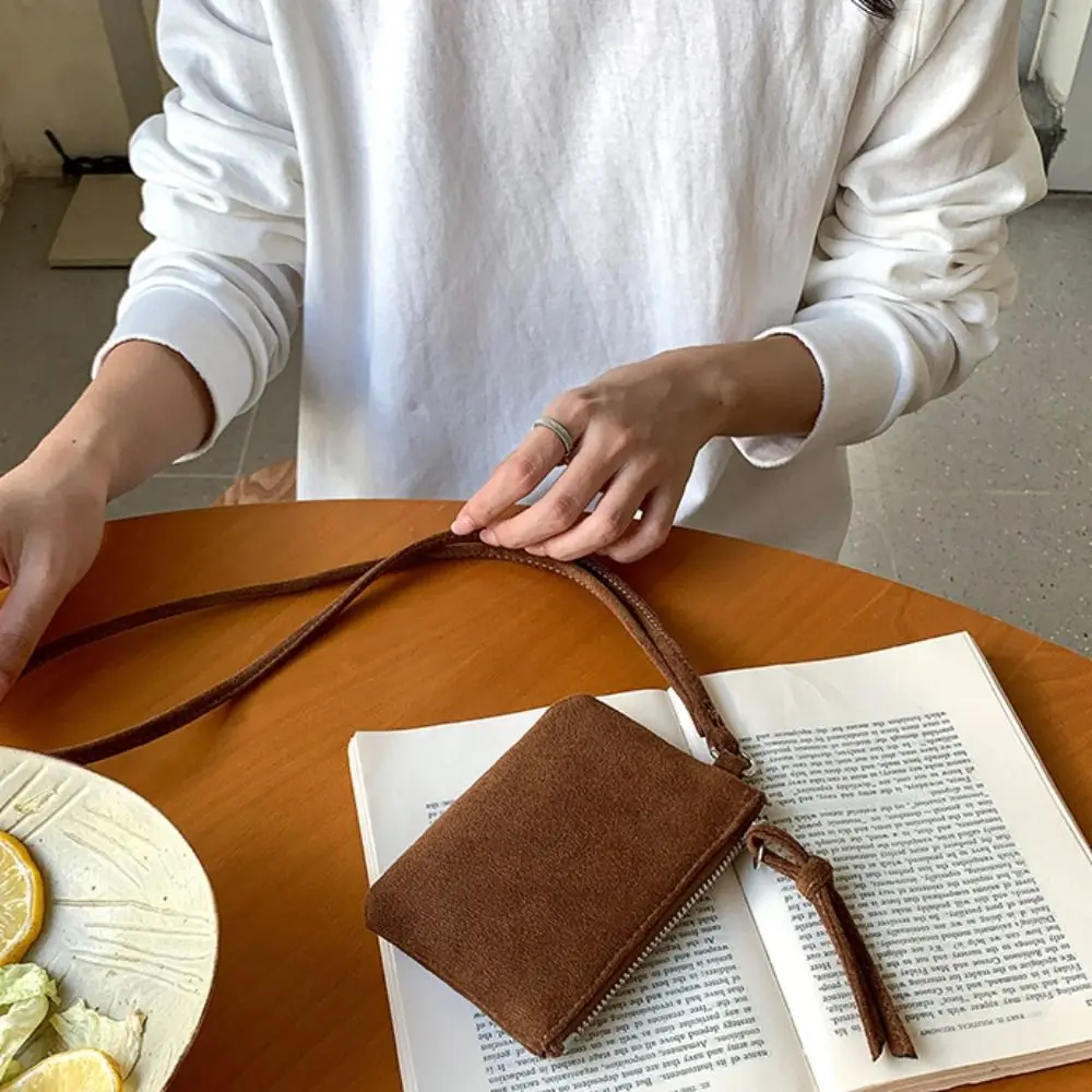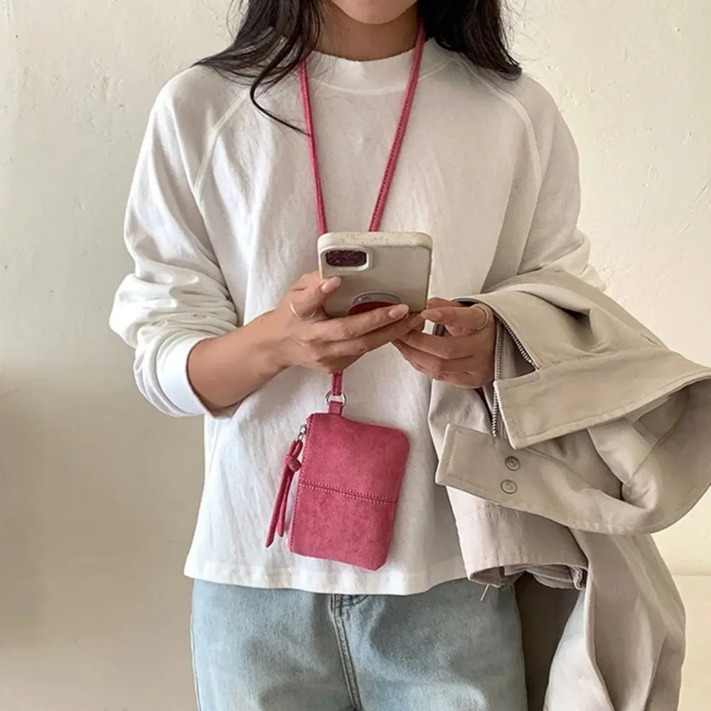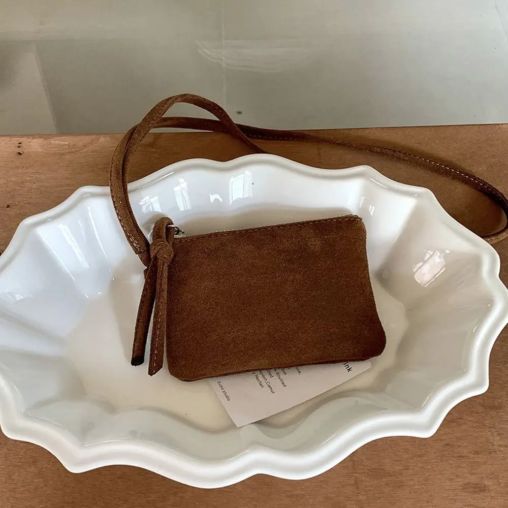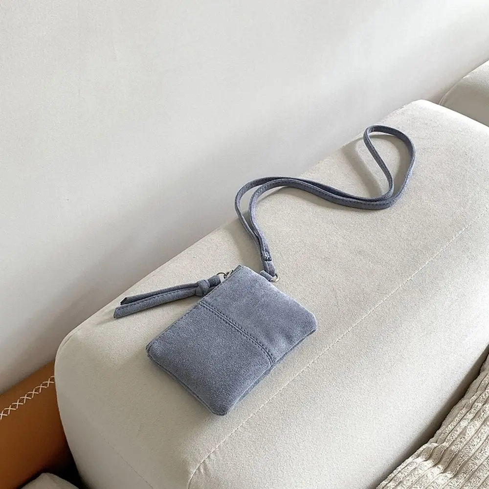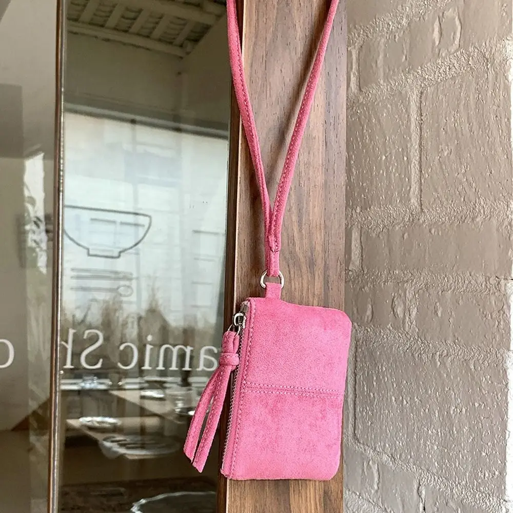 Cyflymder Fashion PU Leather Suede Coin Purse Leopard Print Hanging Neck Mini Storage Bag Shoulder Bag Purse Pendant Accessories Outdoor
