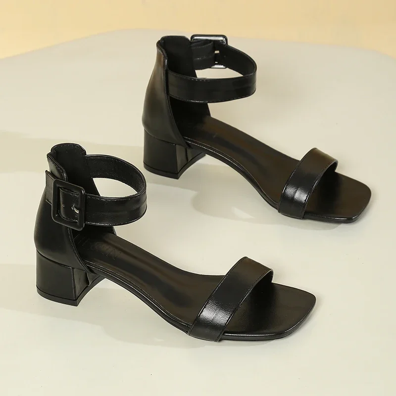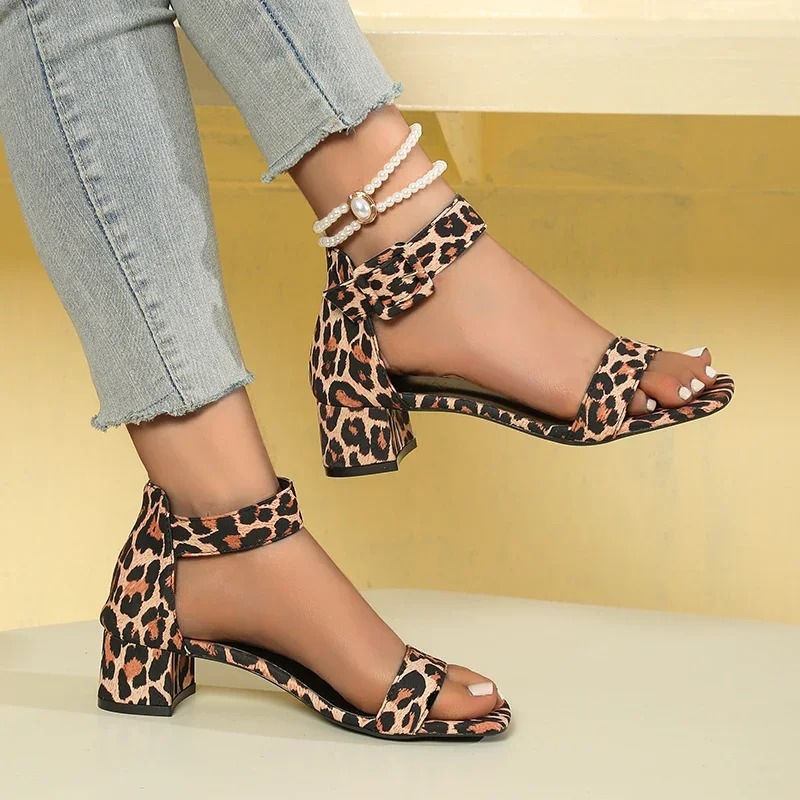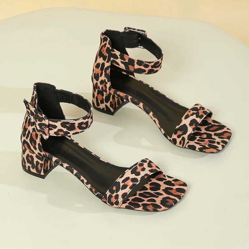 Cyflymder Fashion Sandals summer belt buckle square heel sandals leopard print square high heel sandals women's shoes large-sized design