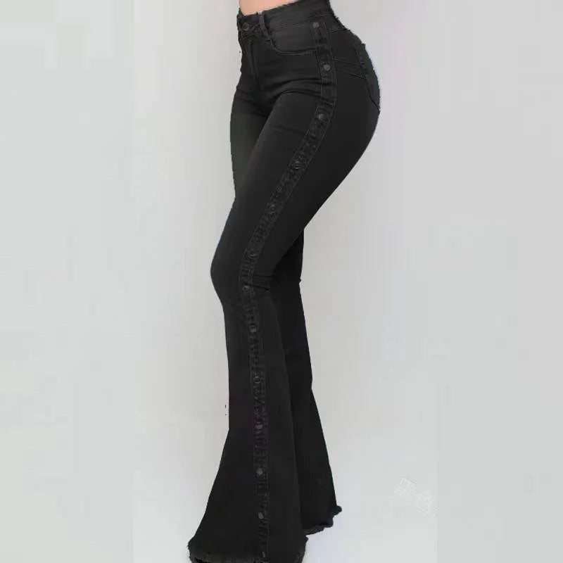 Cyflymder Fashion Side Studded Buckle Decoration Flared Jeans Women Wide Leg Trousers High Waist Denim Pants Daily Casual Chic Streetwear
