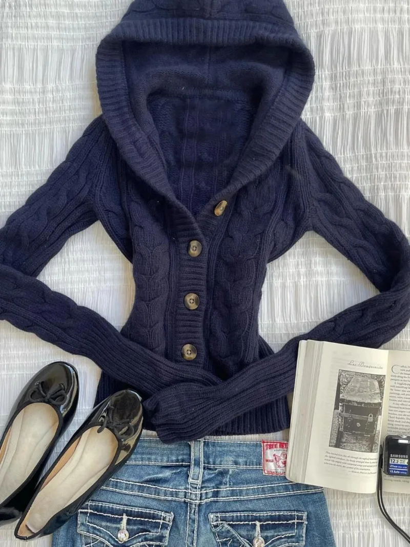 Cyflymder Fashion Vintage American Solid Knitted American Cardigan Harajuku All Match Punk Jumpers Y2k Aesthetic Spring Autumn Clothes