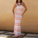 Cyflymder Fashion Women Knitted Slip Dress Summer Wave Stripe Print Backless Party Dress for Vacation Cocktail Beach Streetwear