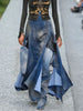 Cyflymder Fashion Women's Denim Skirt High Waist Sexy Patchwork Irregular M-Shaped Slit Elegant Party Skirt Y2K Fashion Skirt