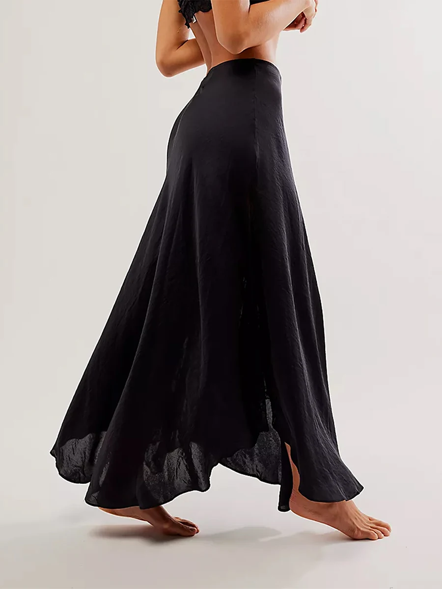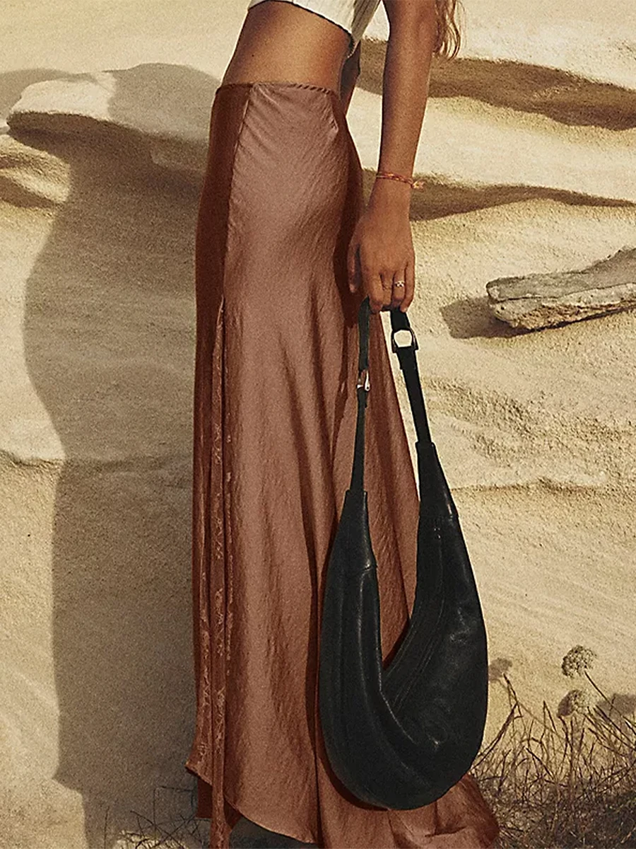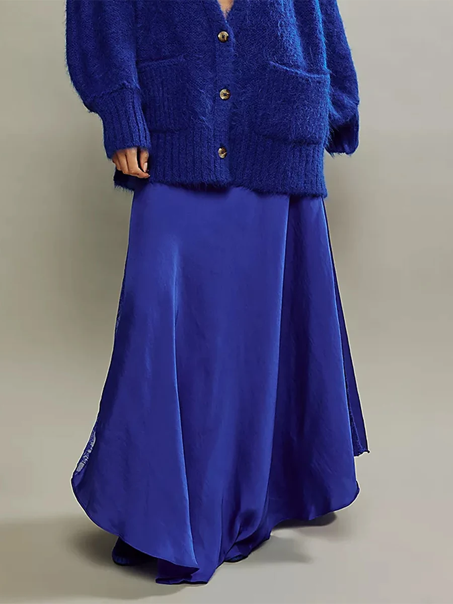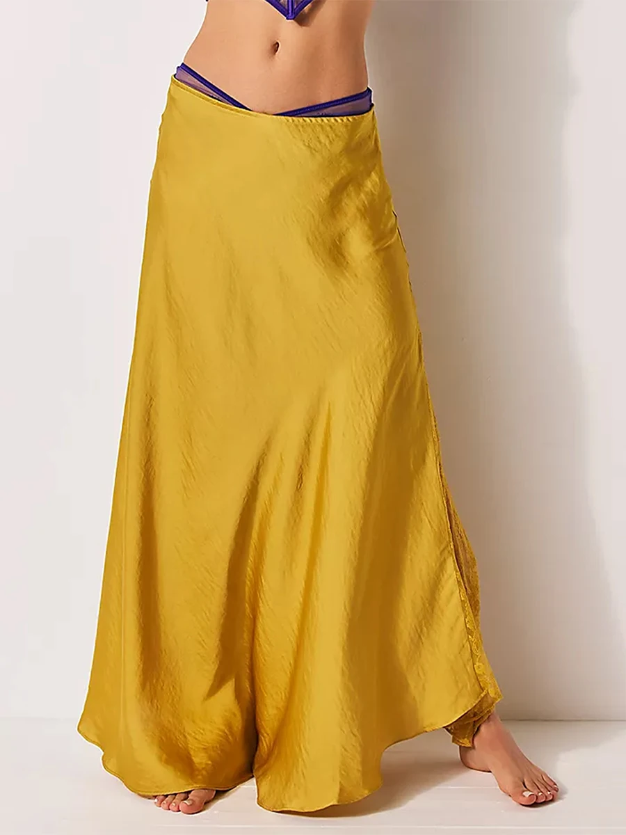 Cyflymder Fashion Women's Midi Skirt Low Waist Patchwork Lace Satin Skirt with Lace Flower Y2K Vintage Skirt for Summer Hoiday