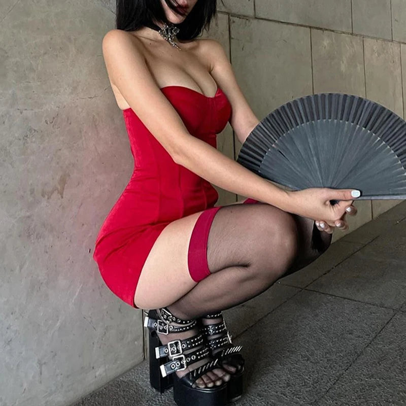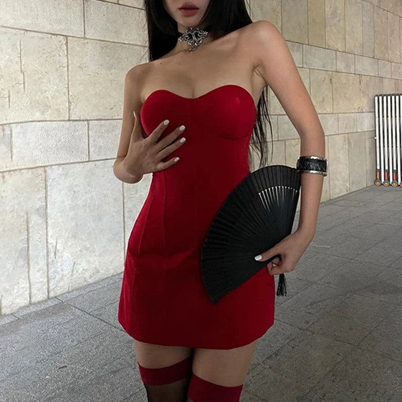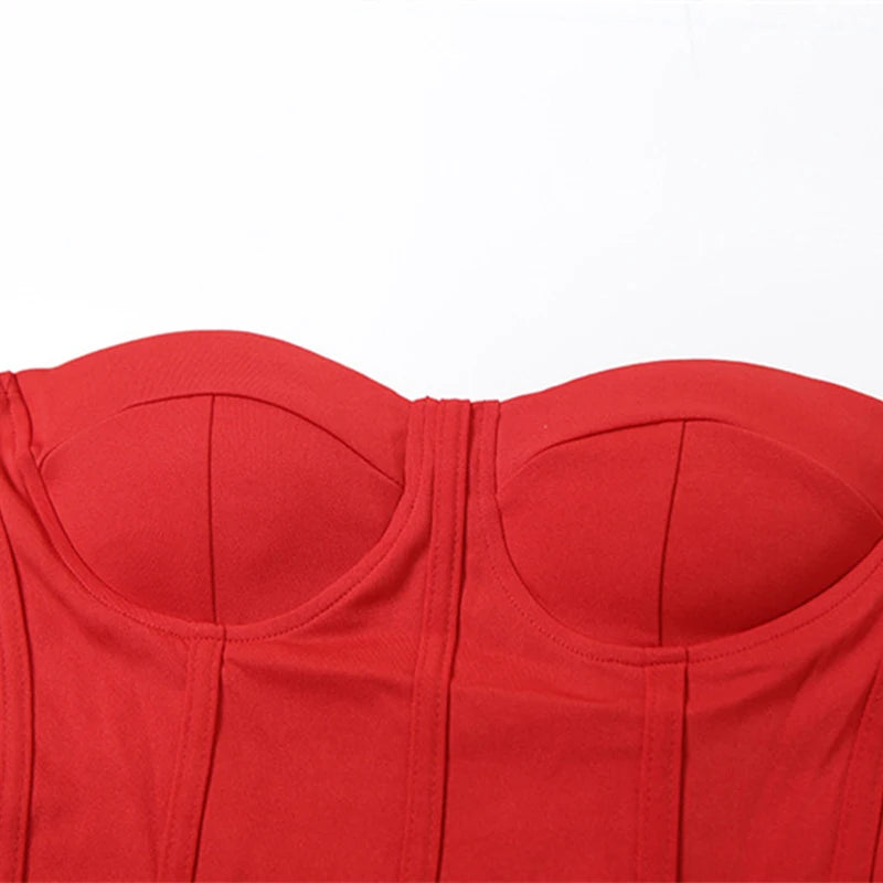 Cyflymder Fashion Women's Red Mini Dresses Strapless Backless Off-shoulder Body-shaping High Waist Sexy Charming Package Hip Vestidos