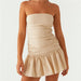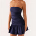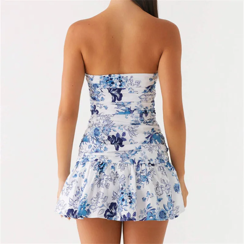 Cyflymder Fashion Women's Ruched Tube Top Dress Vintage Holiday Strapless Sleeveless Slim Fit Flare Dress Summer Clubbing Dress
