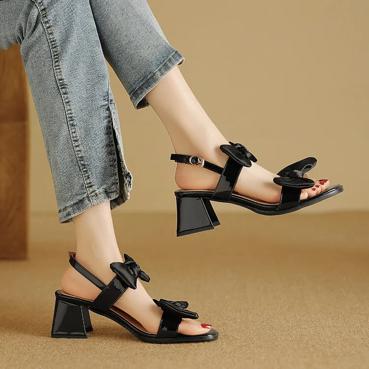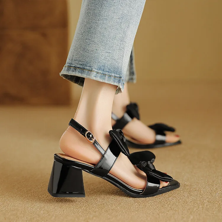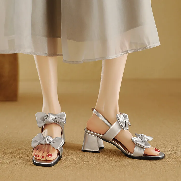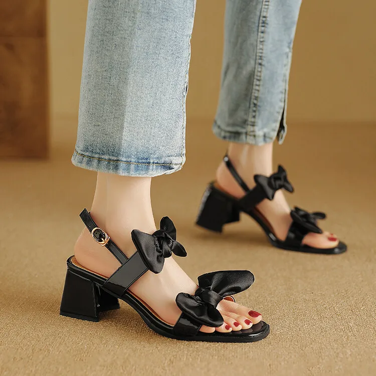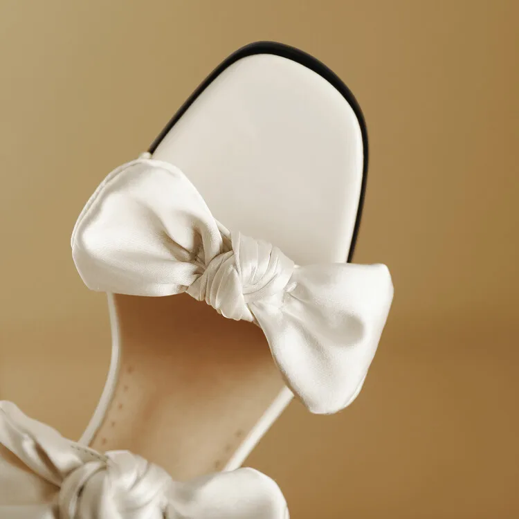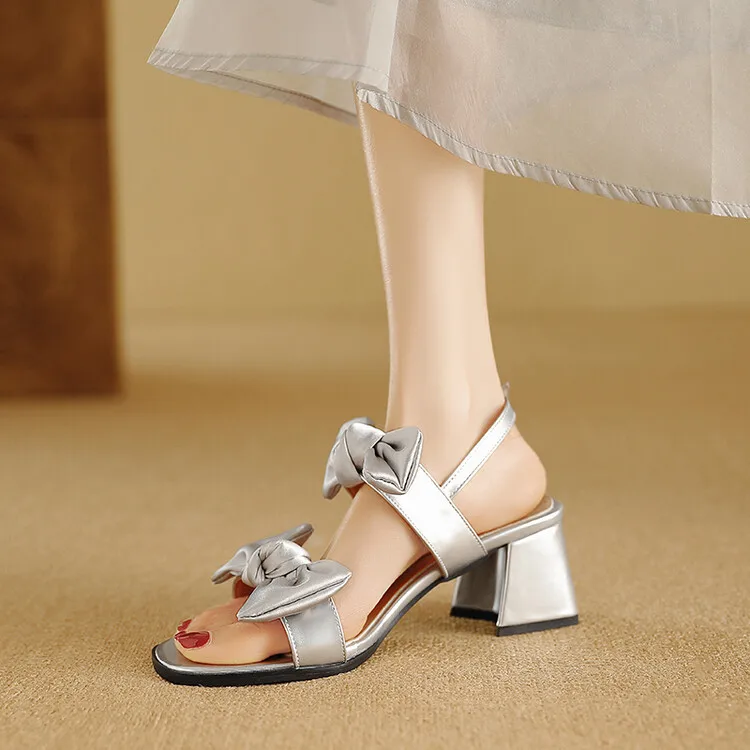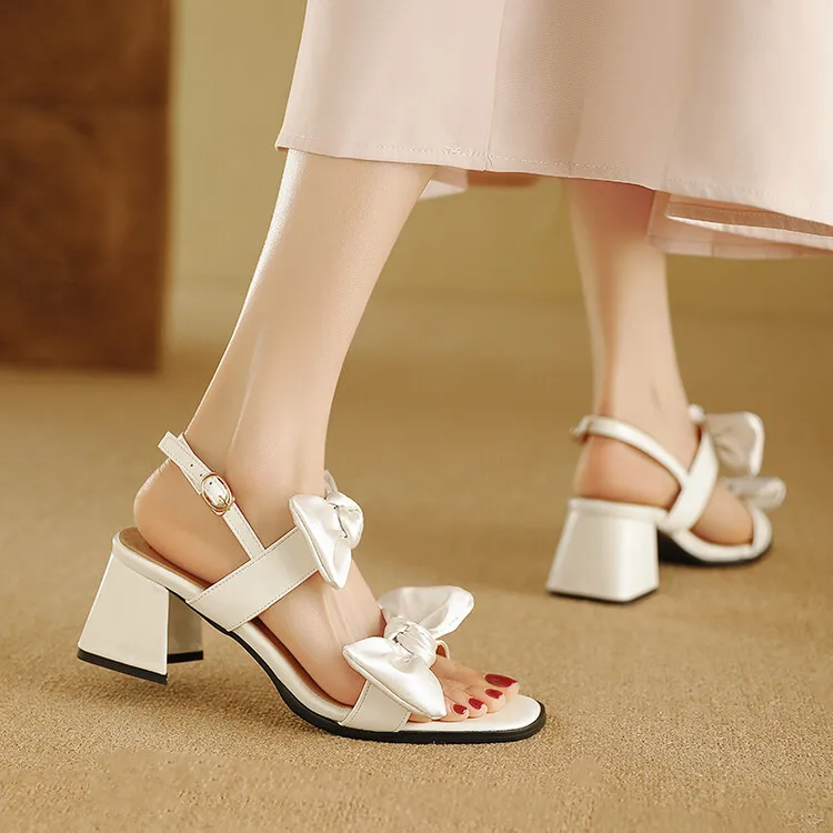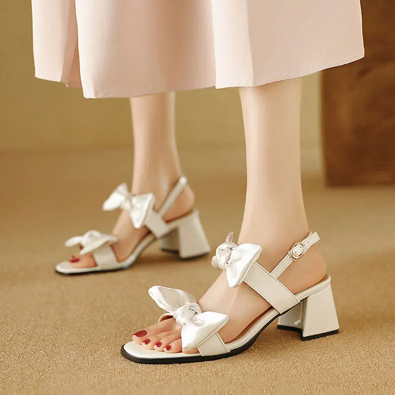 Cyflymder Fashion Womens Shoes 2025 Clear Heels Female Sandal Med Large Size Luxury Velvet Comfort Girls Bow Beige Medium Big Low Solid Ru