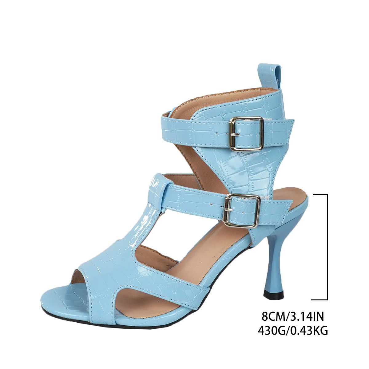 Cyflymder Fashionable design, slim heel round toe fish mouth snake pattern PU leather high-heeled sandals, plus size women's shoes