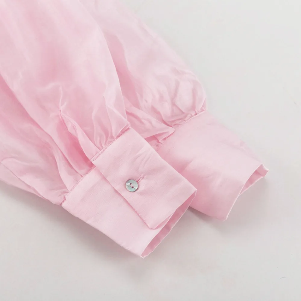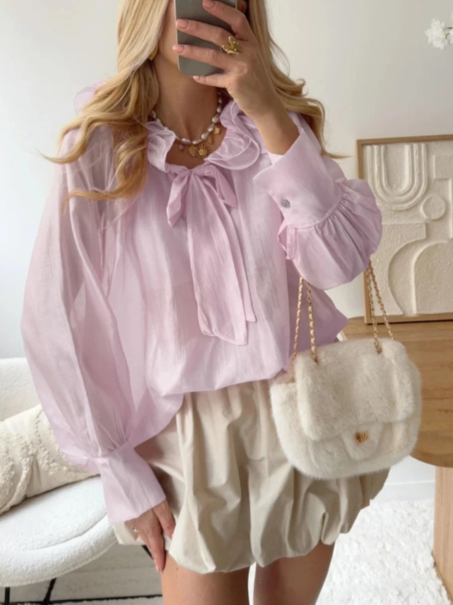Cyflymder Fashionable Office Women's Shirt Scarf Collar Long Sleeves Patchwork Perspective Temperament Loose Blouse Female