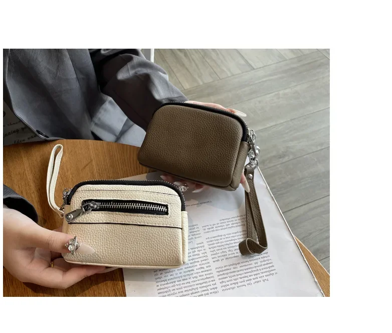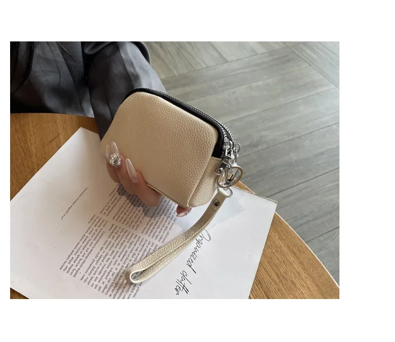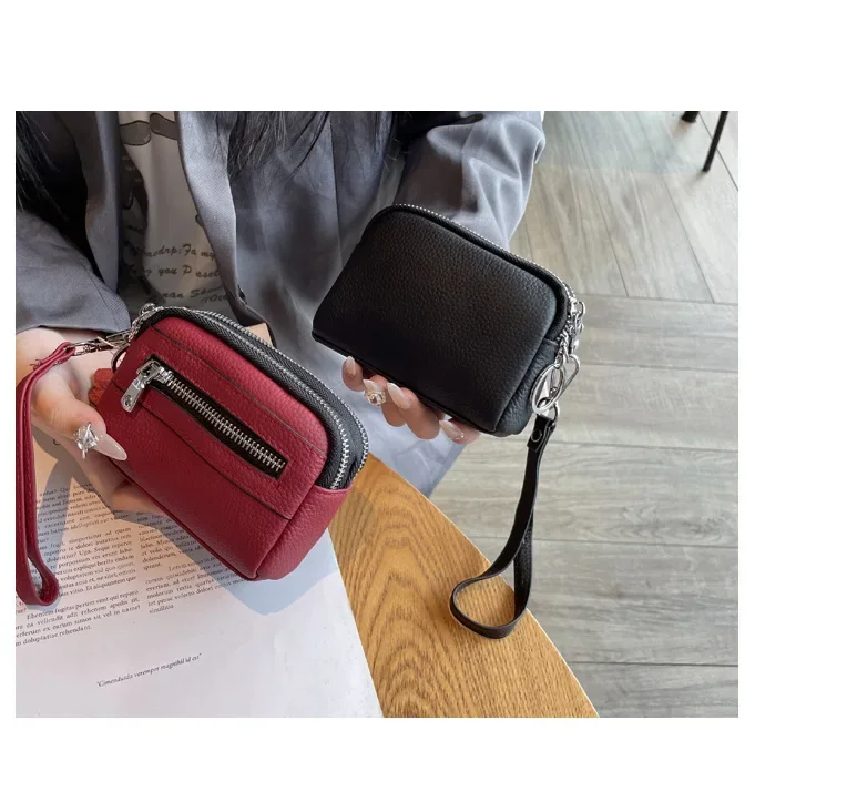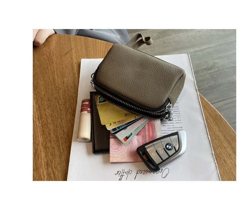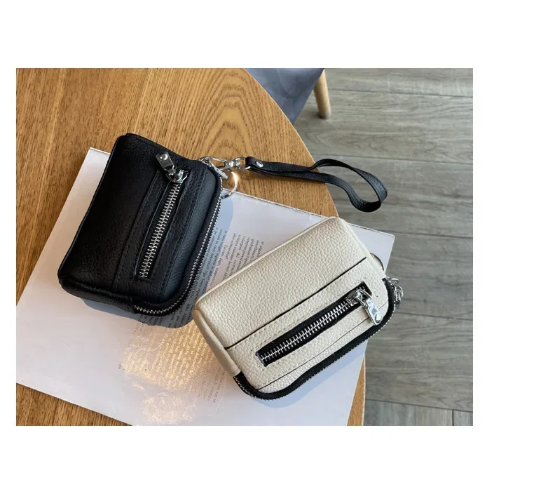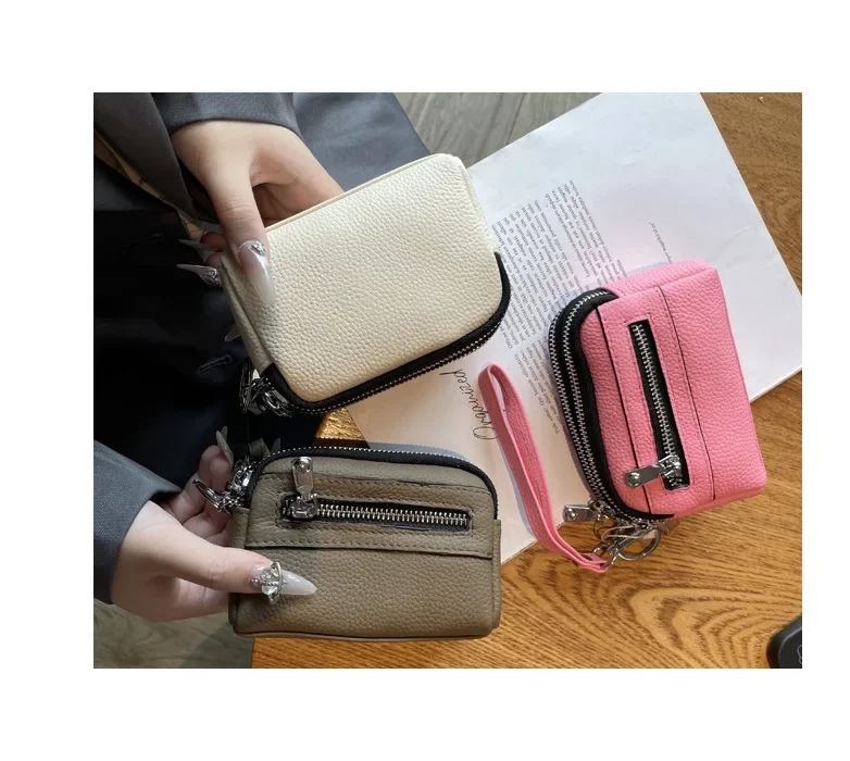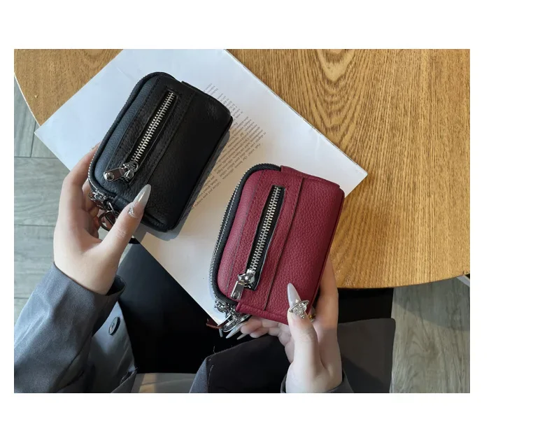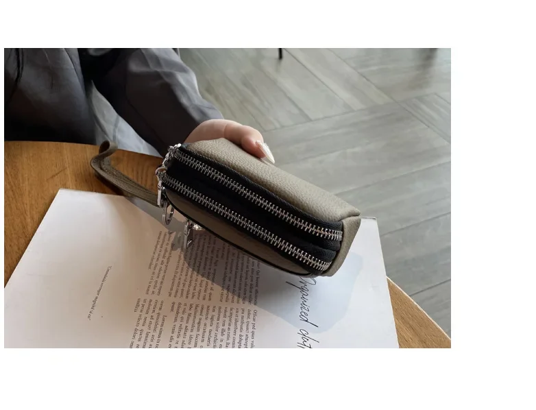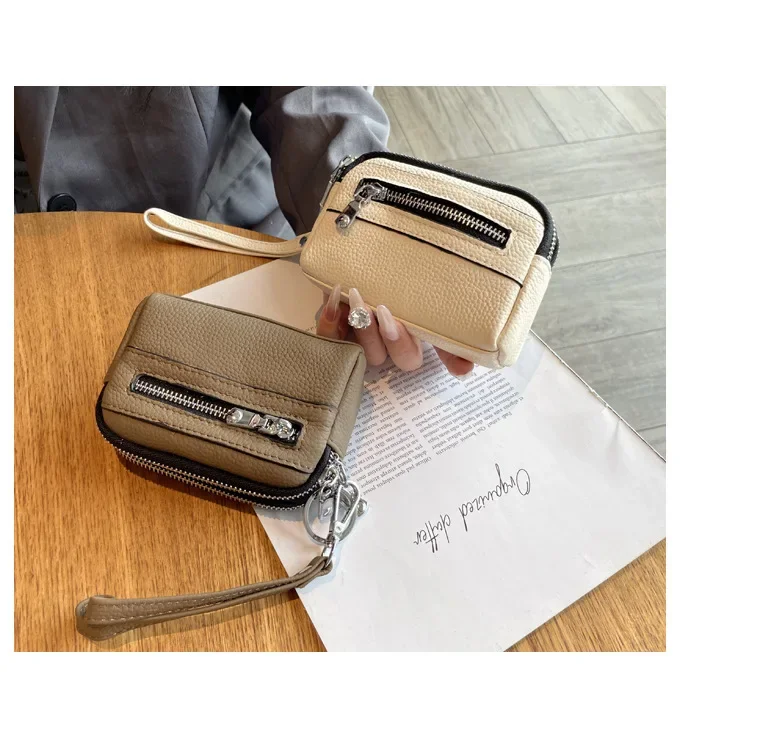 Cyflymder Fashionable Portable Large Capacity Leather Coin Purse Simple Design Double Zipper Handbag High End Mini Coin Wallet