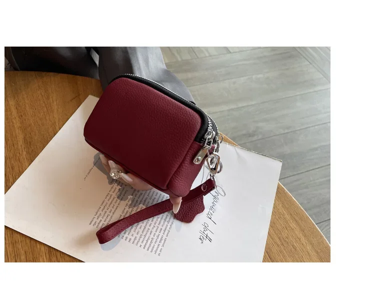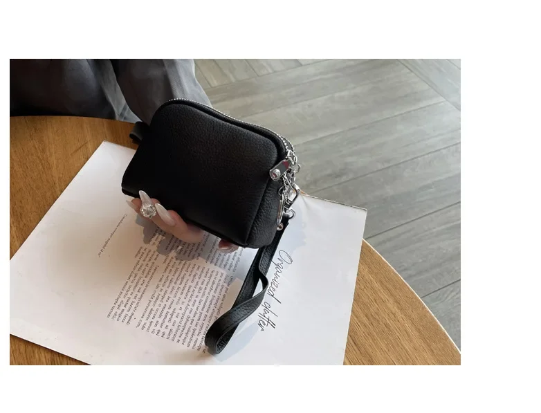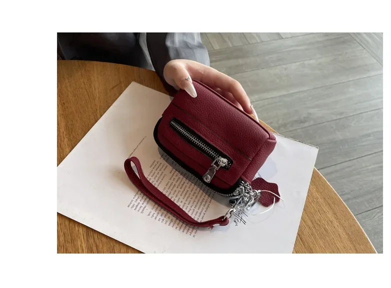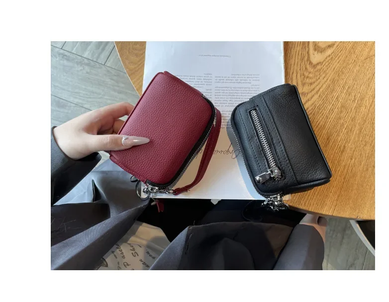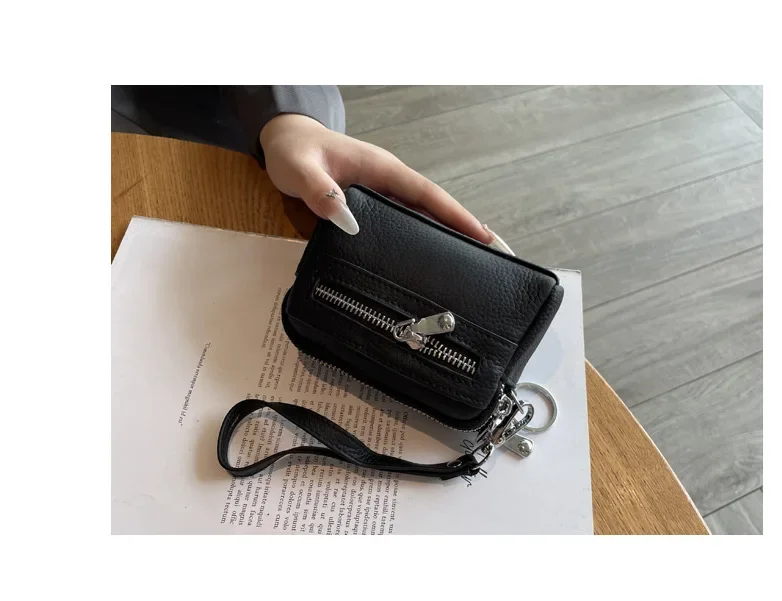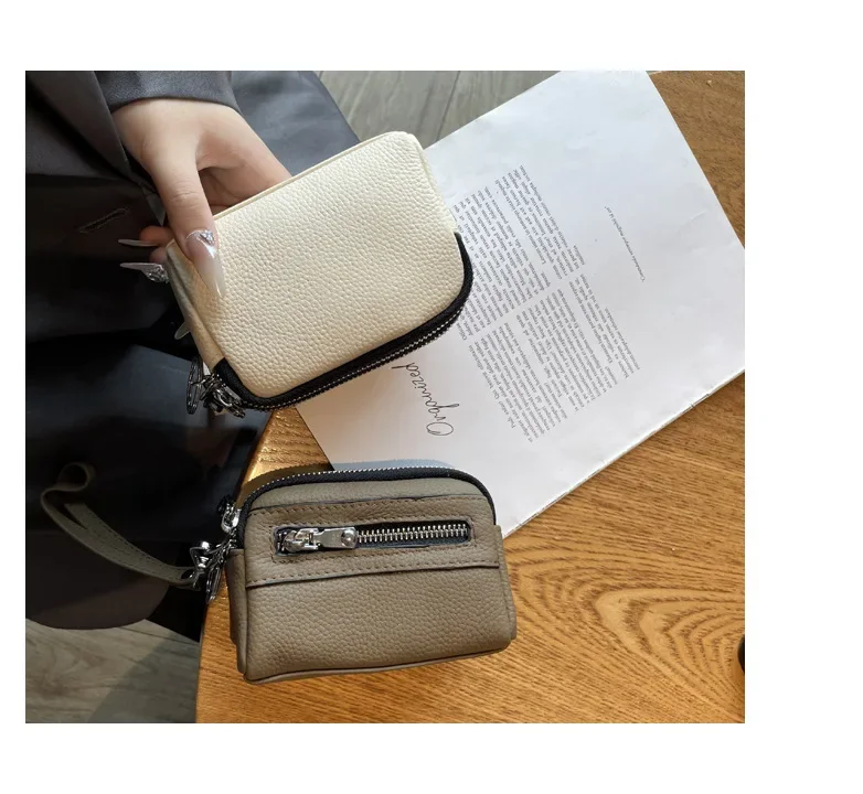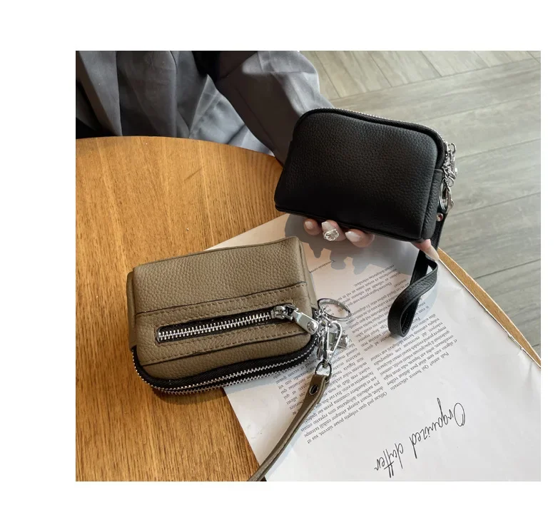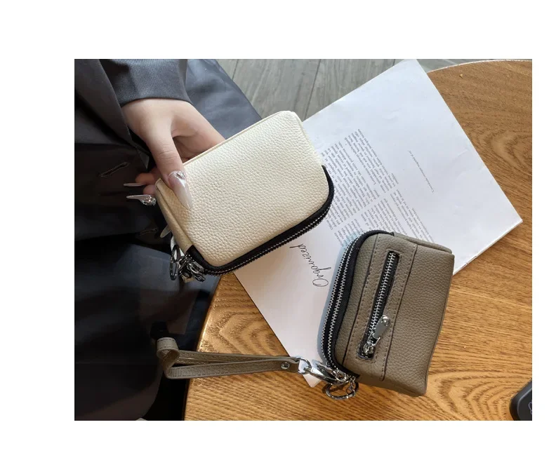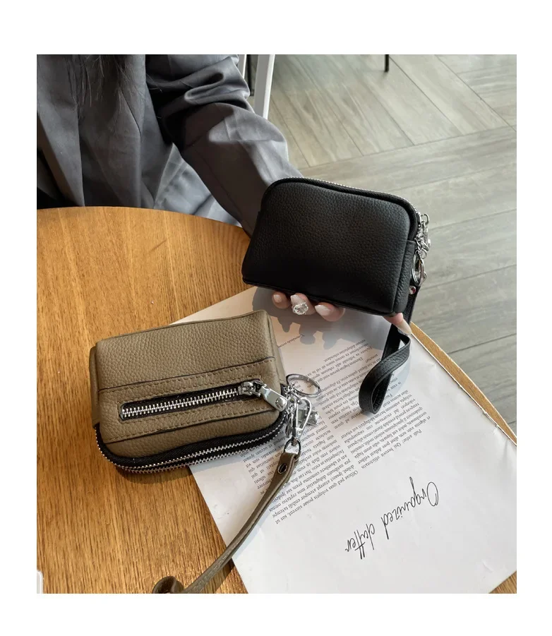 Cyflymder Fashionable Portable Large Capacity Leather Coin Purse Simple Design Double Zipper Handbag High End Mini Coin Wallet