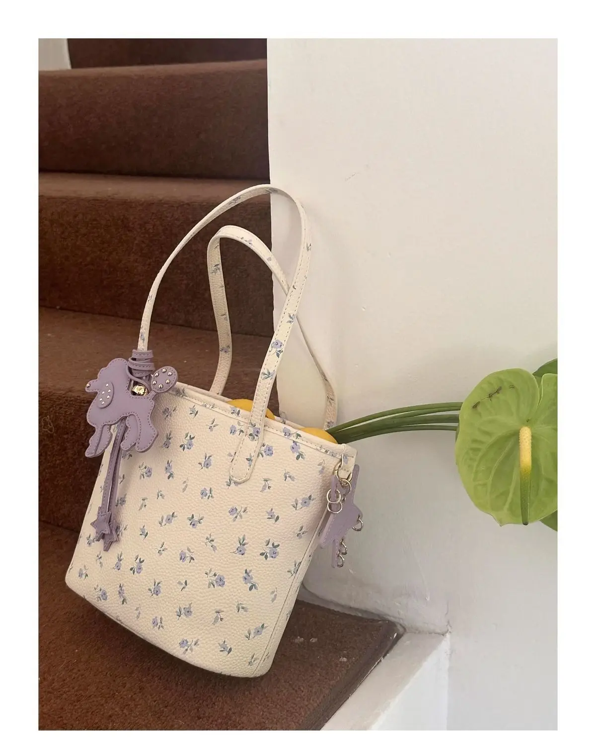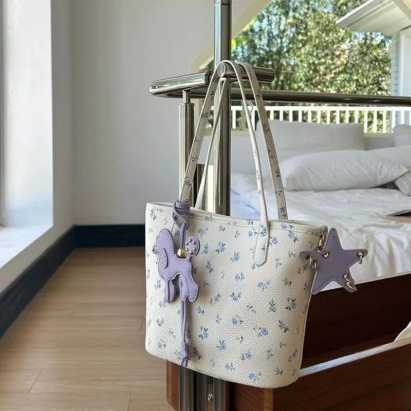 Cyflymder Floral Market Tote Bag Women Cartoon Purple Charm Cute Shoulder Purse Ladies Leather Large Capacity Commuter Handbag 2025 New
