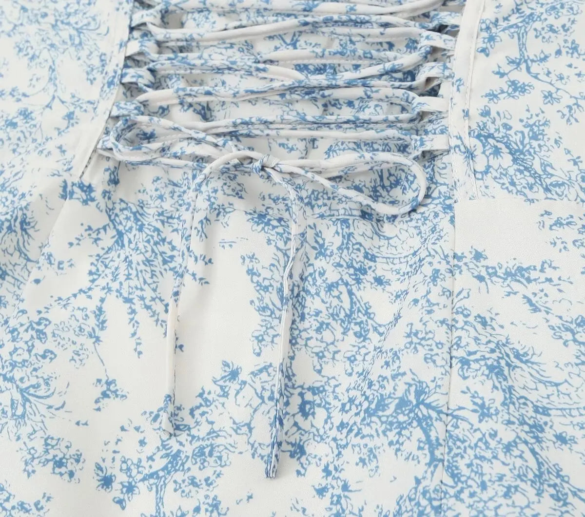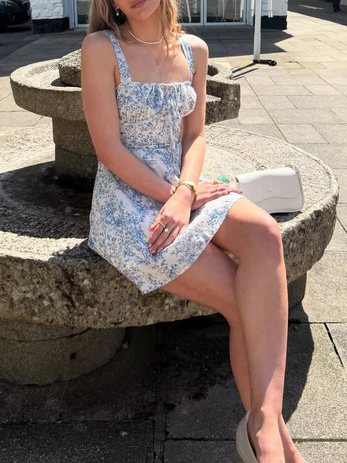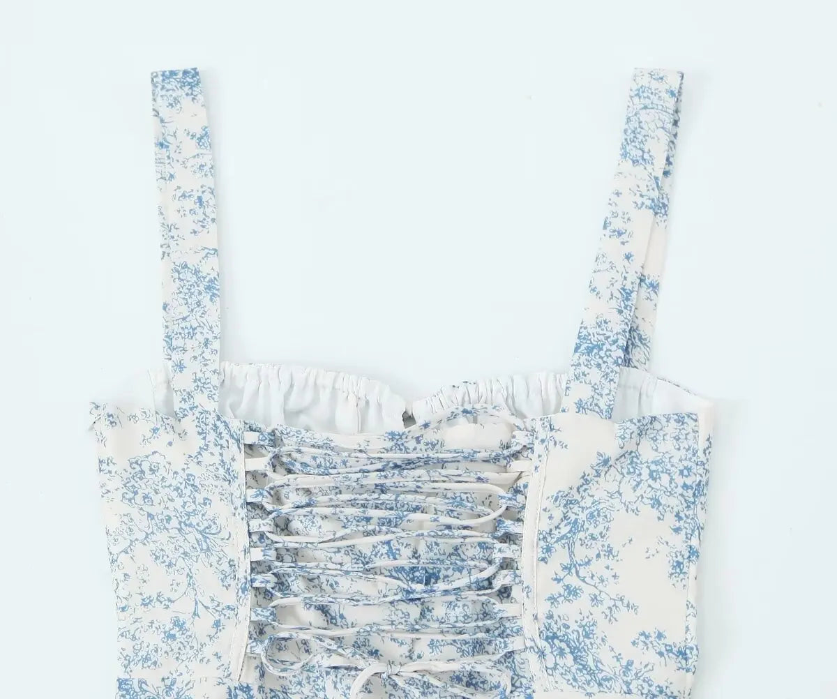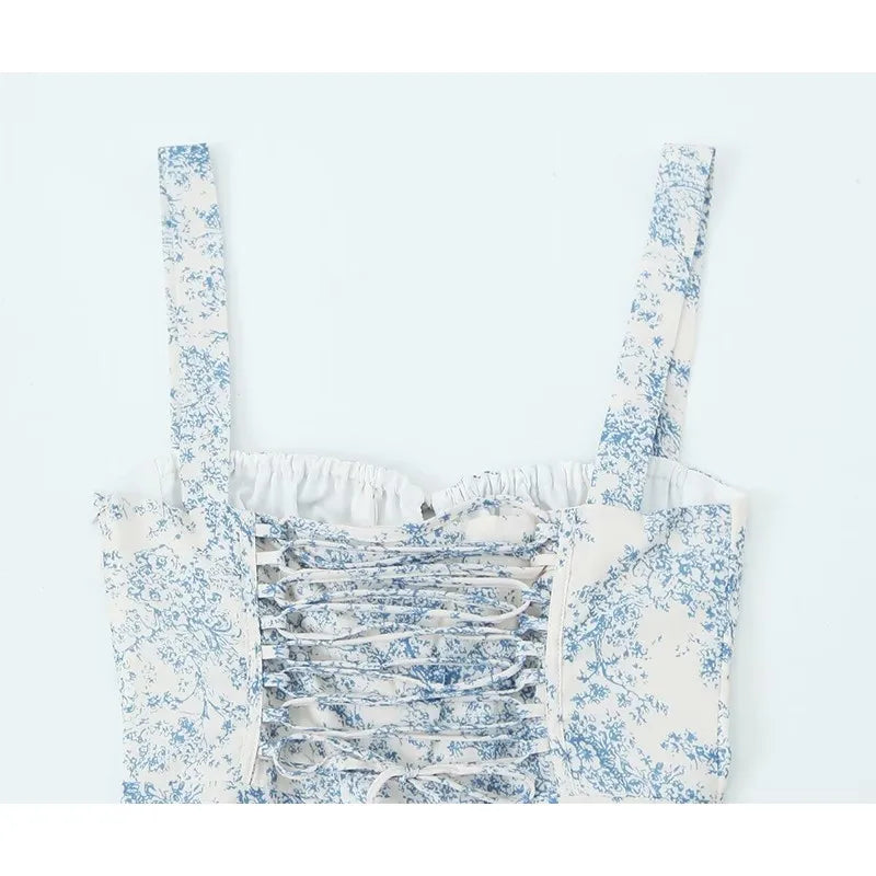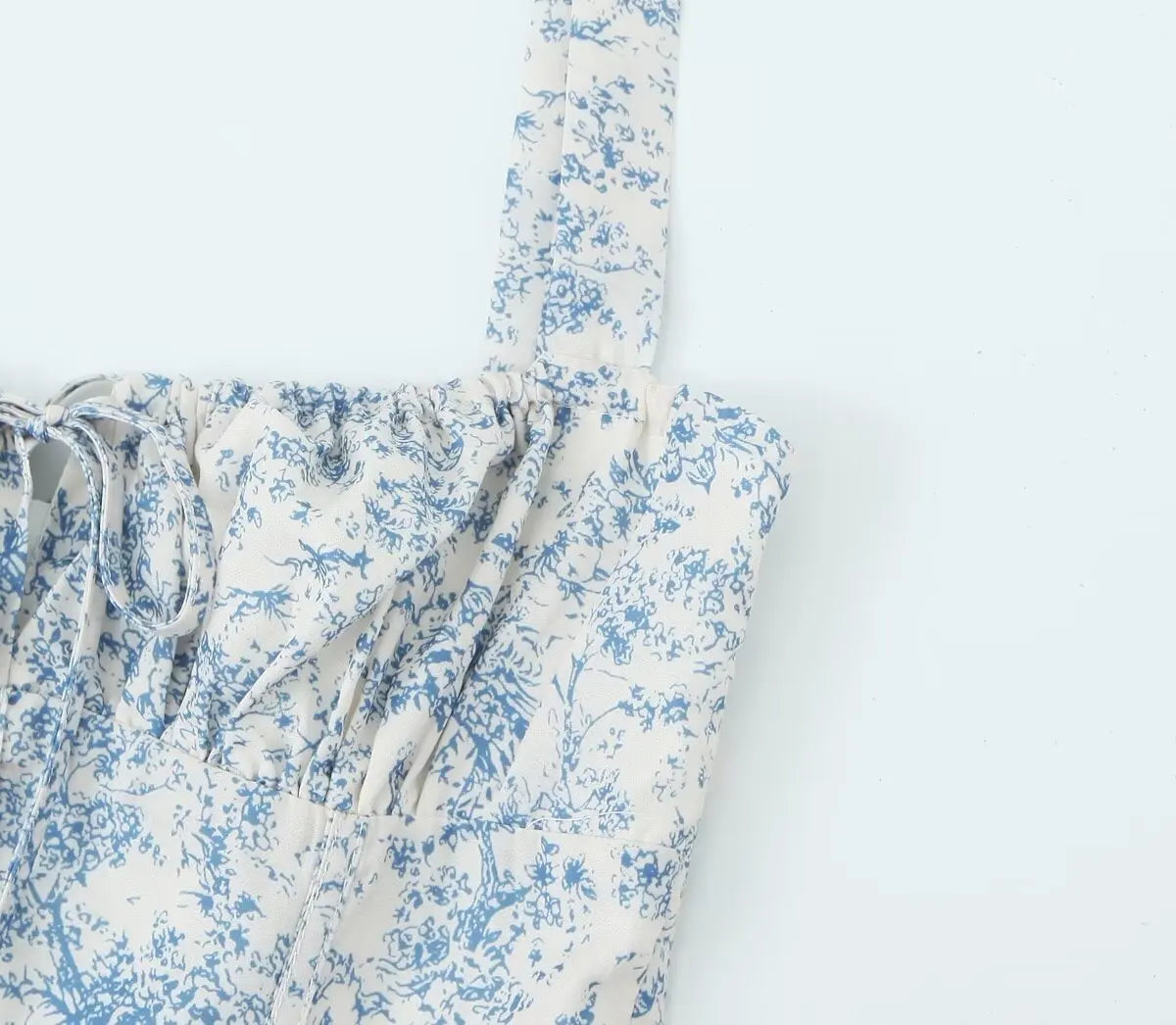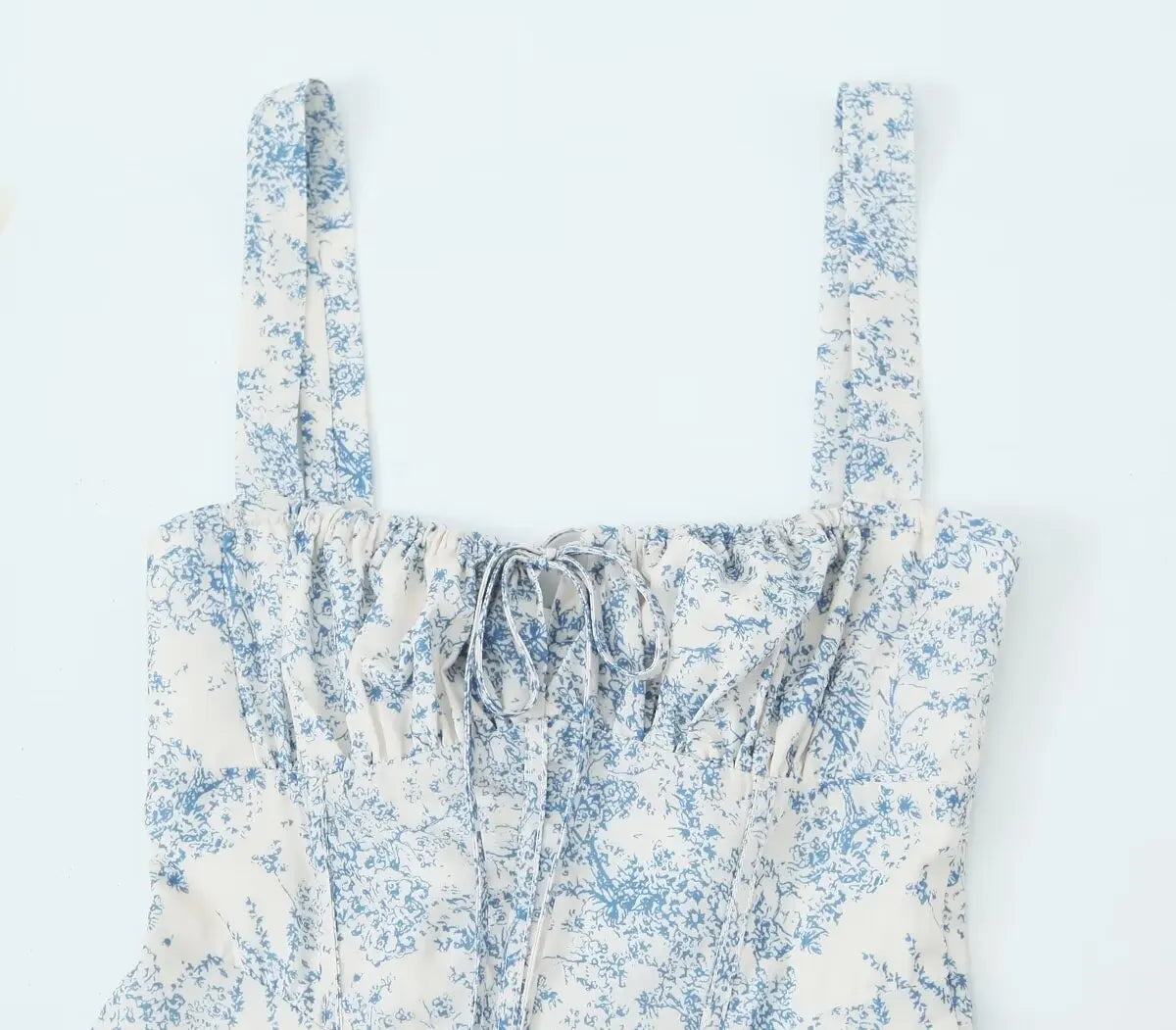 Cyflymder Floral Print Sling Short Dress For Women French Style Sexy Lace Up Bandage Back A-line Mini Dresses Summer 2025 New Holiday Robe