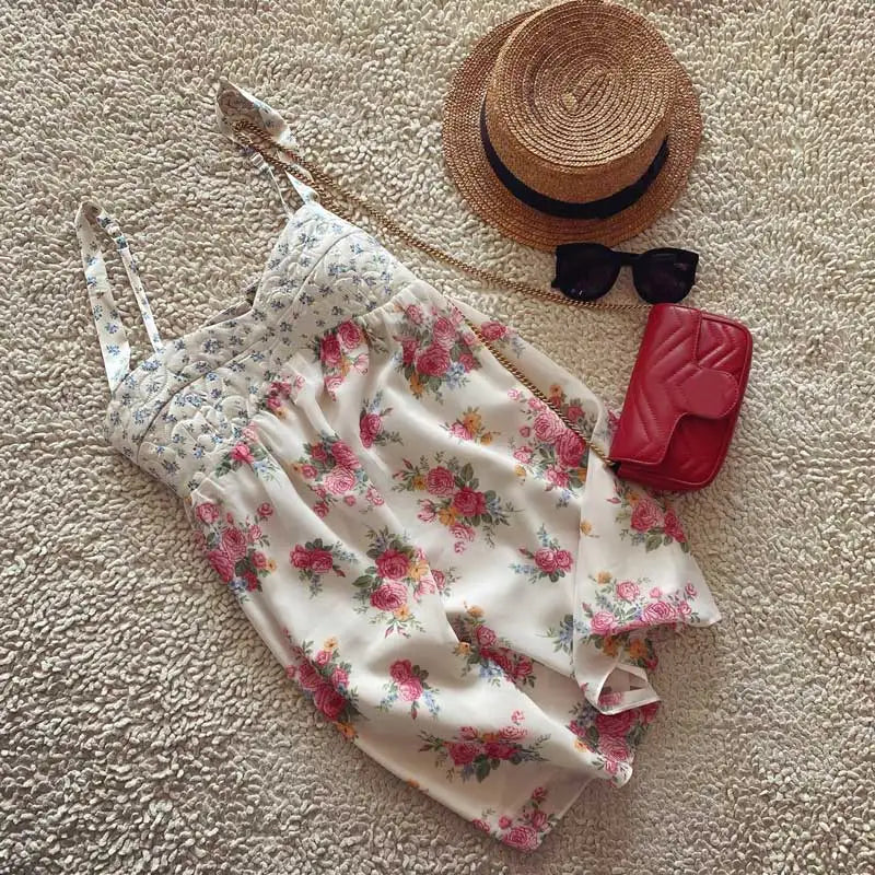 Cyflymder floral print straps Open back mini dress for women cute spring summer dress 2025 hot girl boho beach dress female